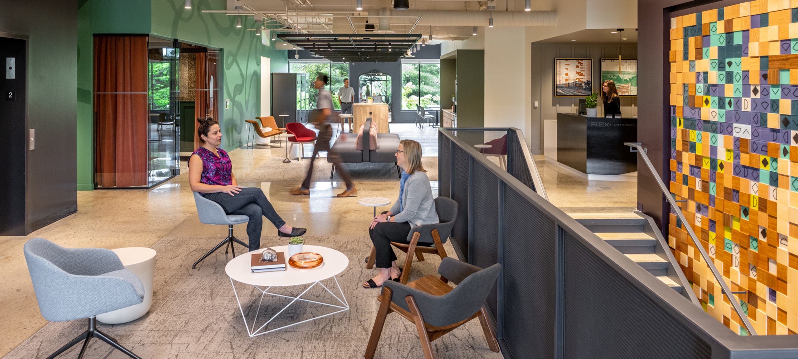 The results of this ambitious project are immediately apparent. FLEX filled a critical gap in the local market, provided a much-needed amenity on campus, and shifted the brand perception of Chesterbrook. FLEX adds a new sense of community and, with the amenities at Circuit, has become the heartbeat of the campus. Within a few quick months, the coworking hub leased to capacity — an impressive outcome highlighting the demand for thoughtfully designed, adaptable workspaces. As FLEX manager Kristin Eichengreen raves, “The building sells itself. That makes our job easy, and we have D2 to thank for that.”