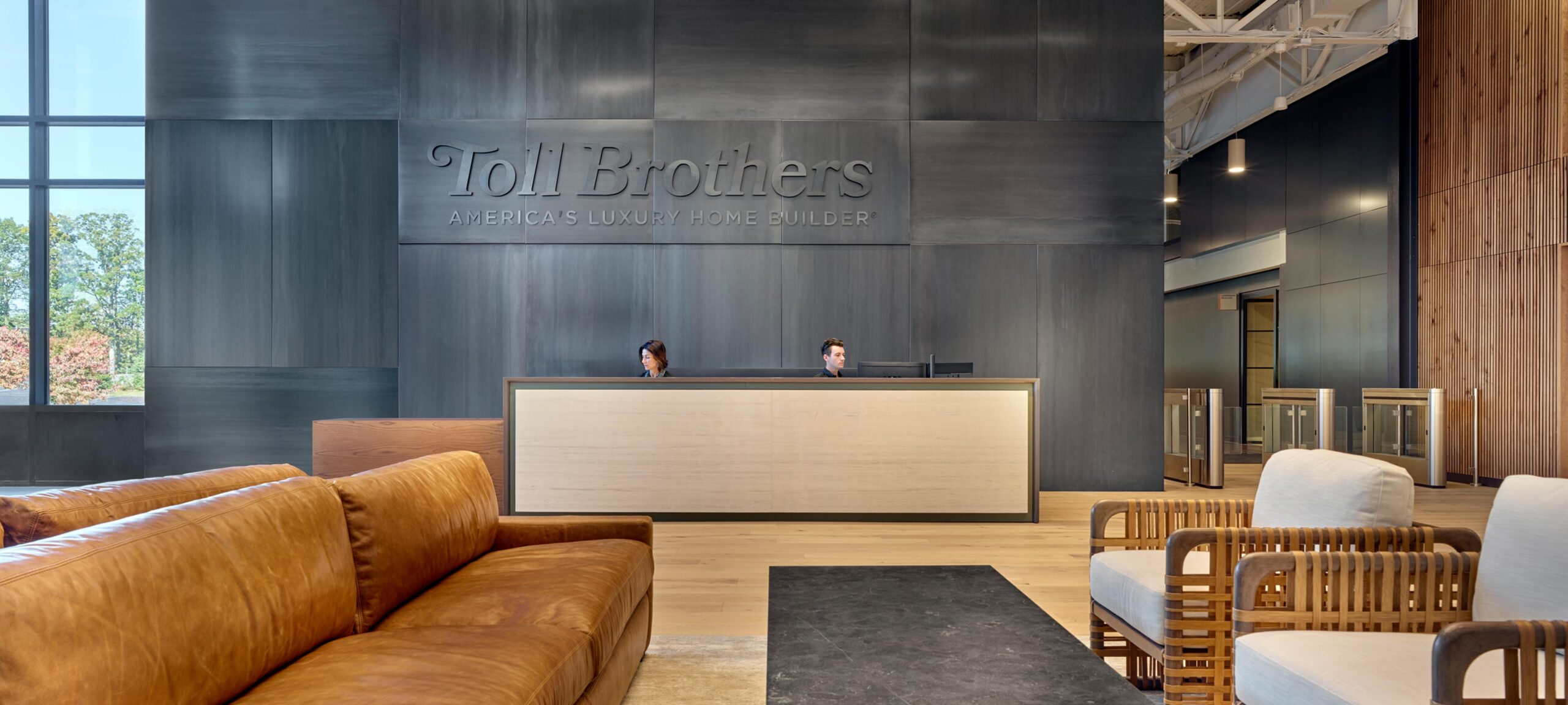 After occupying the same building for almost 40 years, the time came for Toll Brothers to let go of their multi-level, segmented, and bleakly conventional office space. An organization with family at its center and a product offering with a high-end reputation, Toll Brothers wanted their new workplace to exemplify both principles.