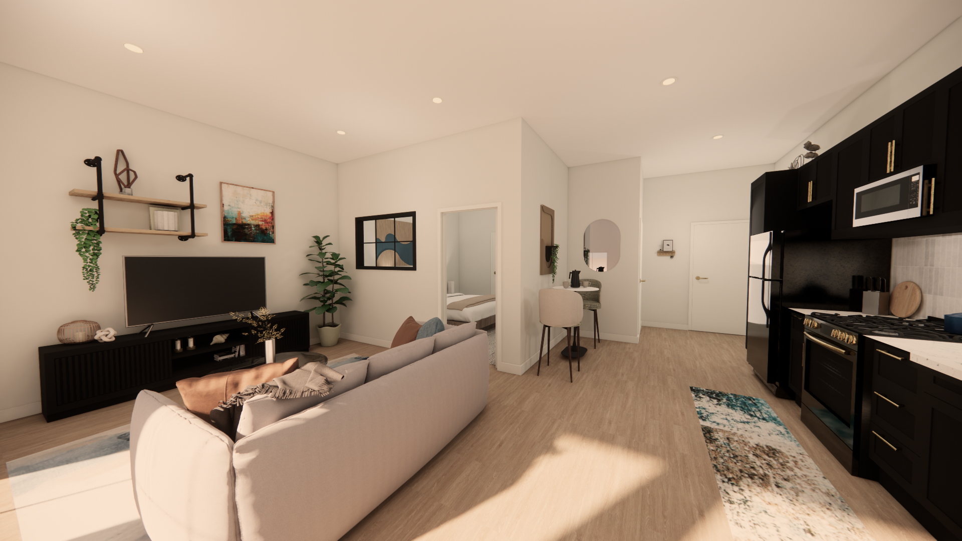 Planned amenities include 9,000 SF of shared space with a fitness center, sauna, golf simulator, lounge, and coworking areas. As part of the redevelopment approvals, an existing parking lot will be converted into a three-acre park, while more than 400 parking spaces will remain across the site. The project introduces attainable workforce housing to the Wayne area while repositioning an underutilized office property for long-term residential use.