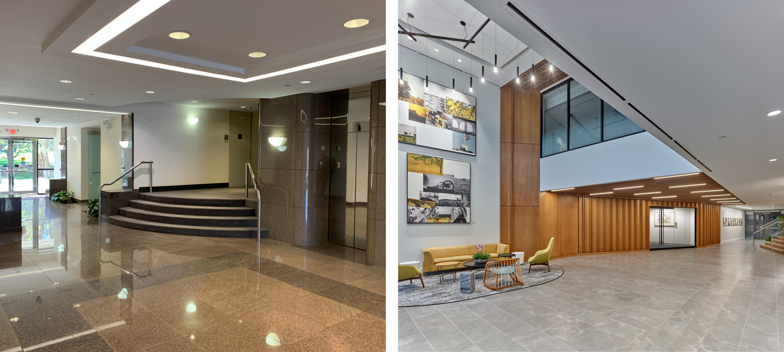 Taken down to the framing, a formerly bland 42,000 square foot office building, has been transformed into an amenity hub