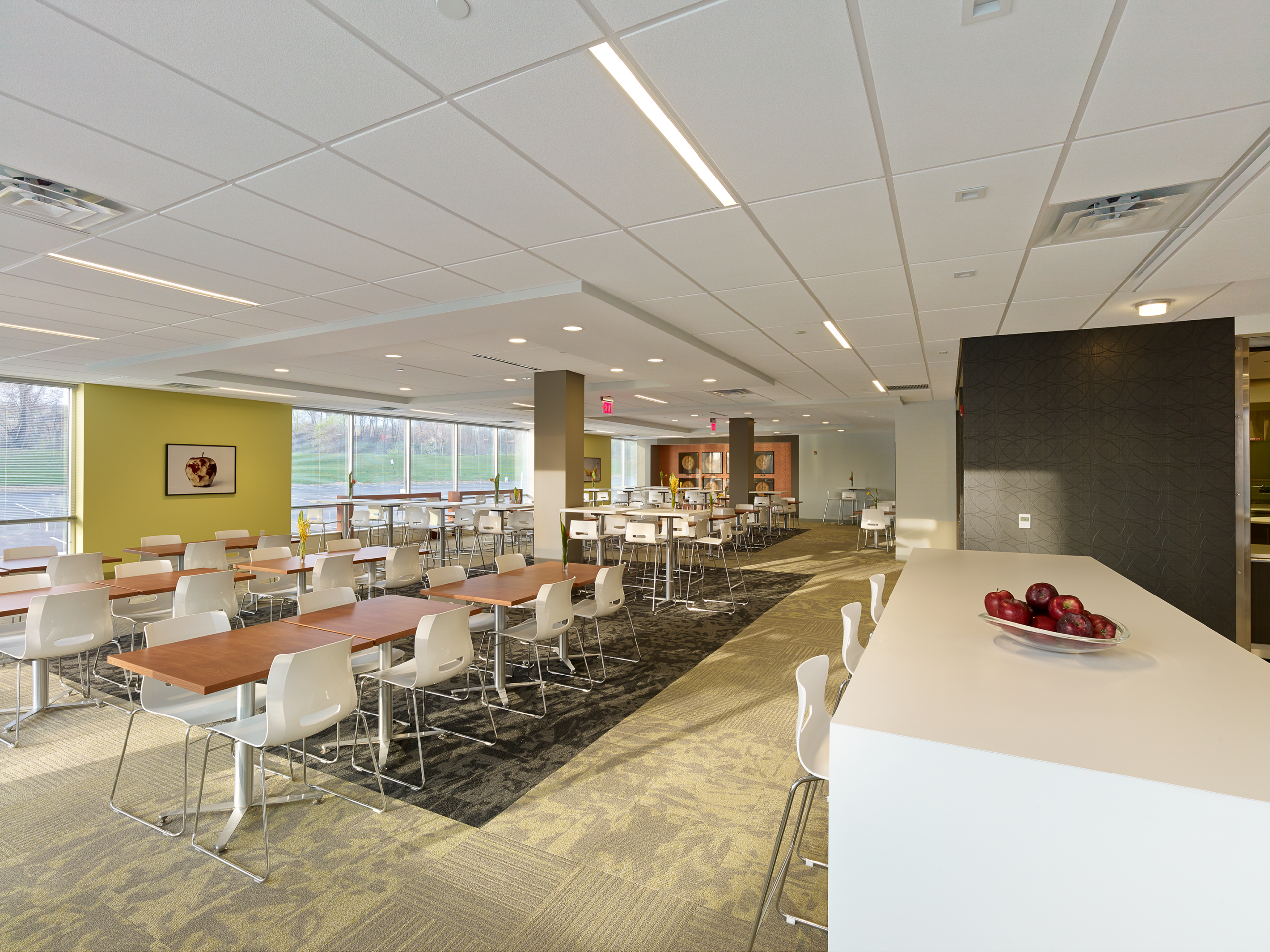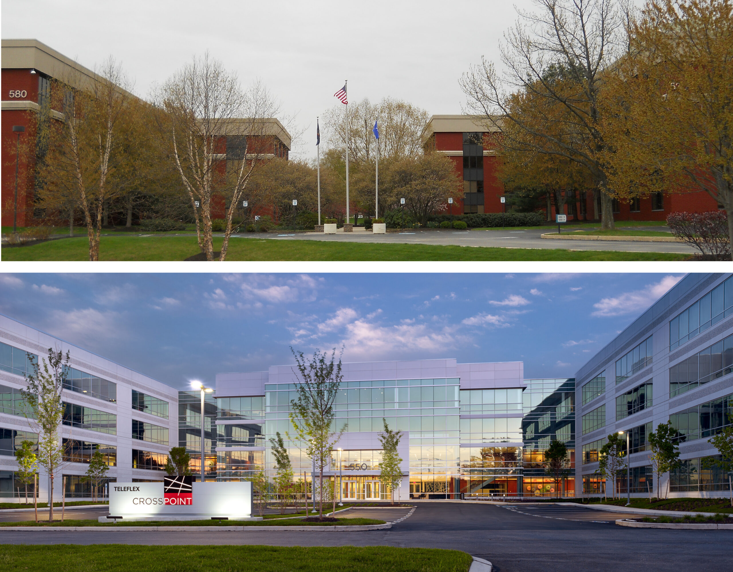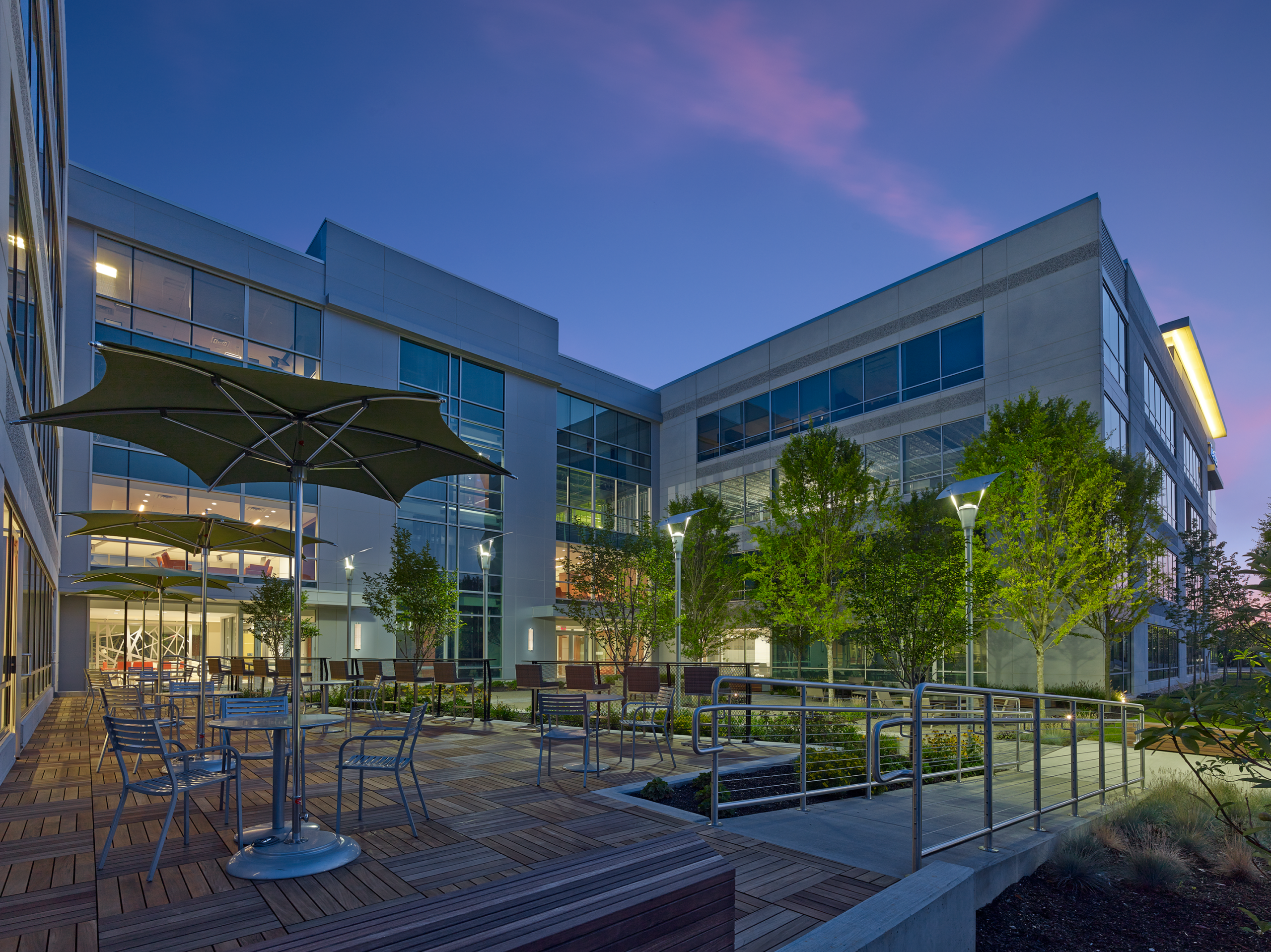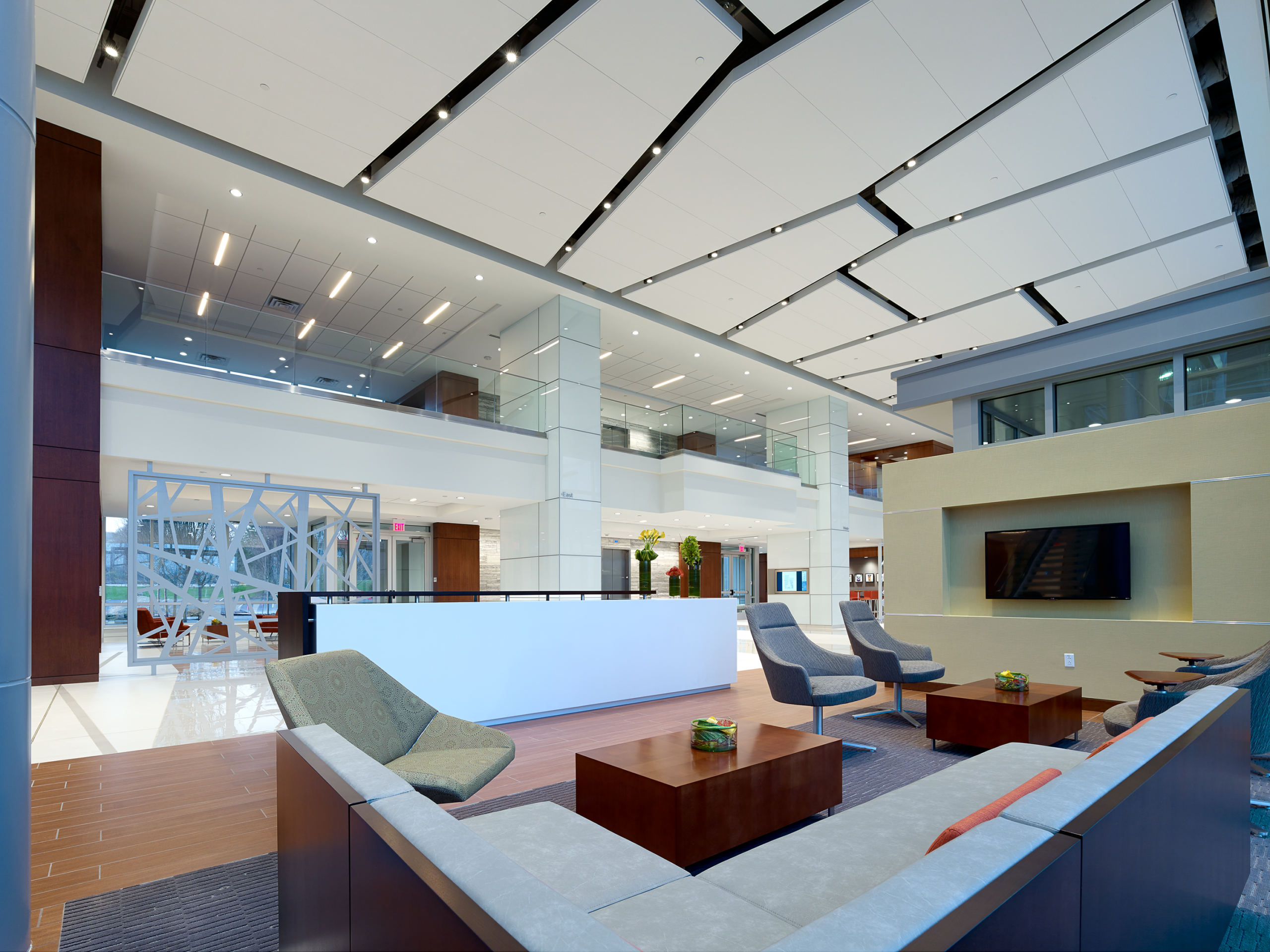 CrossPoint is all about blending—making two buildings into one; balancing work and life; mixing interior and exterior spaces. The 272,000 square foot design joins two previously standalone buildings with an interconnecting four-story addition of a two-story lobby and two floors of rentable office space. Building amenities help promote a healthy work/life blend and include a full-service cafeteria, fitness center, conferencing center, lobby coffee bar, and outdoor plaza space. D2 Branding also conceived a new wayfinding strategy inspired by the buildings’ new brand. Wayfinding and artistic elements give nod to the new logo and guide the user experience—from exterior monument and building signage to interactive digital information centers designed seamlessly into the interiors.