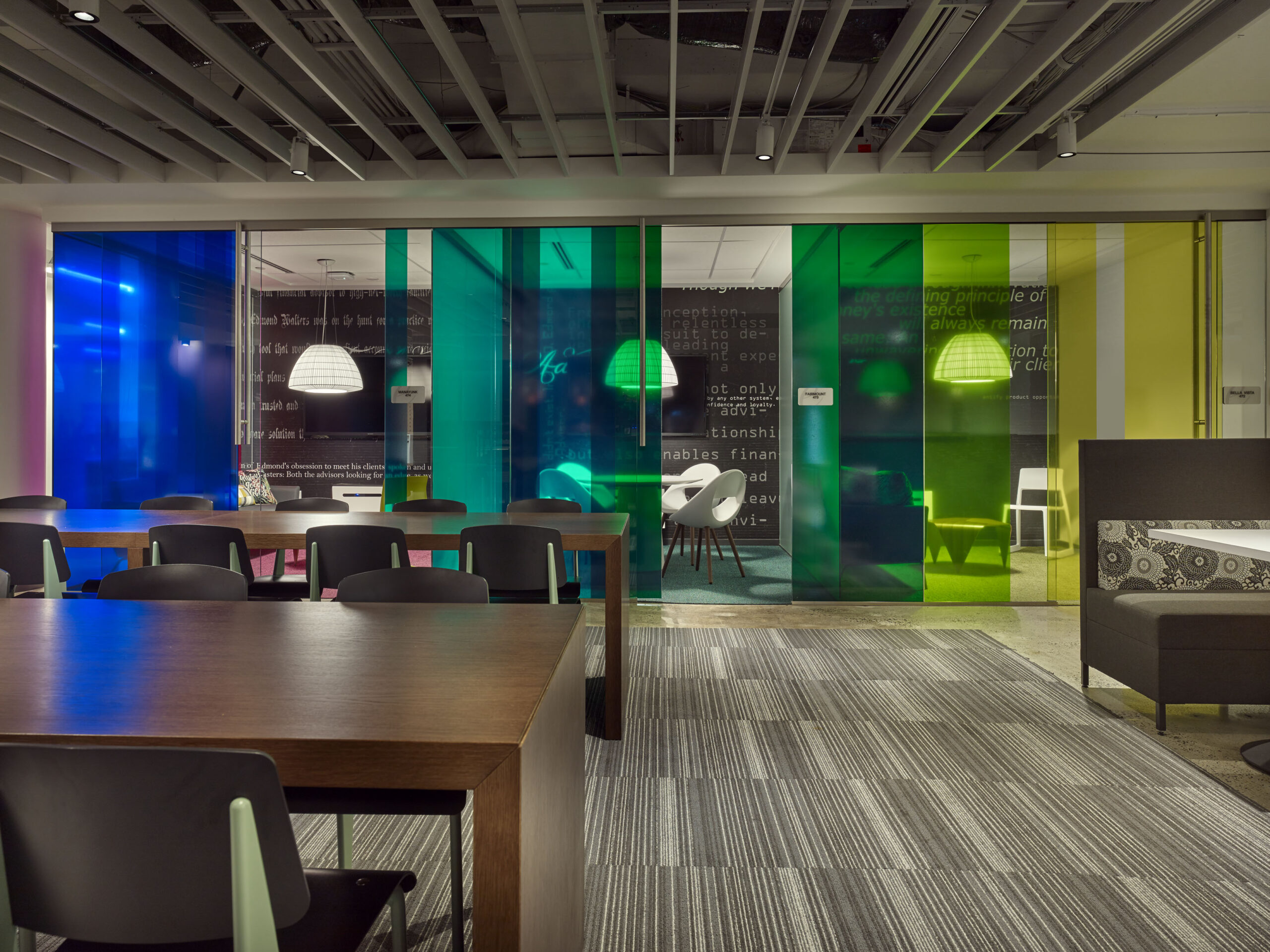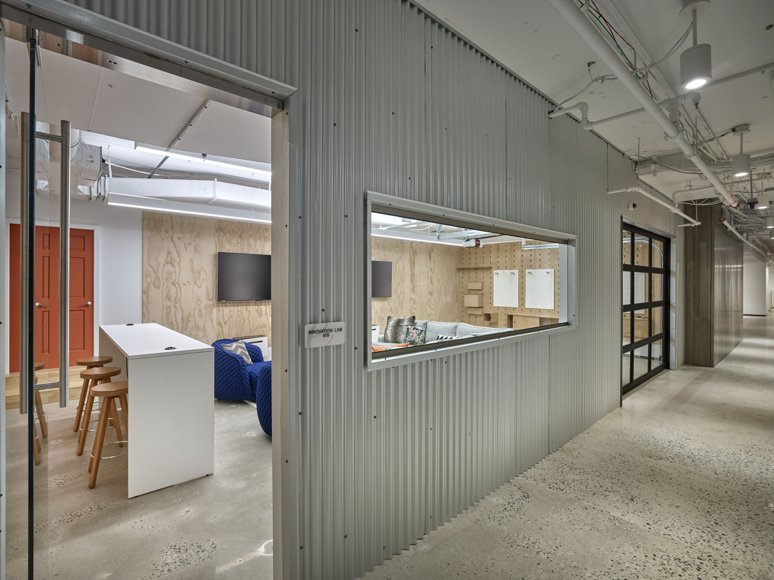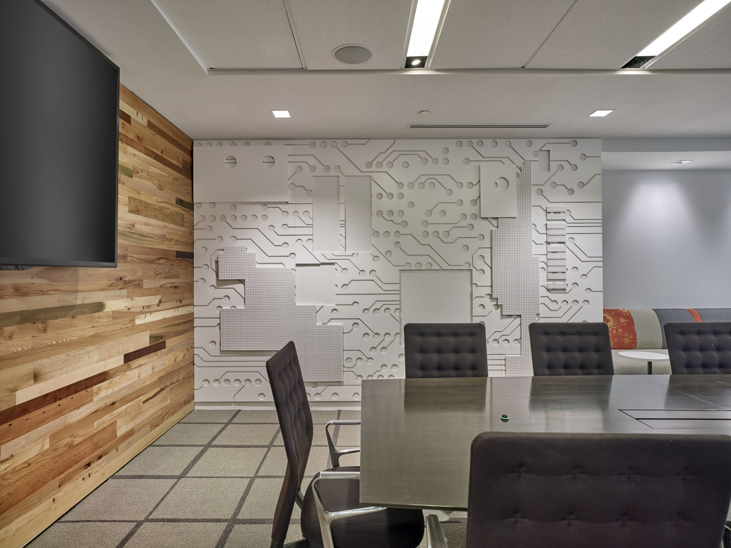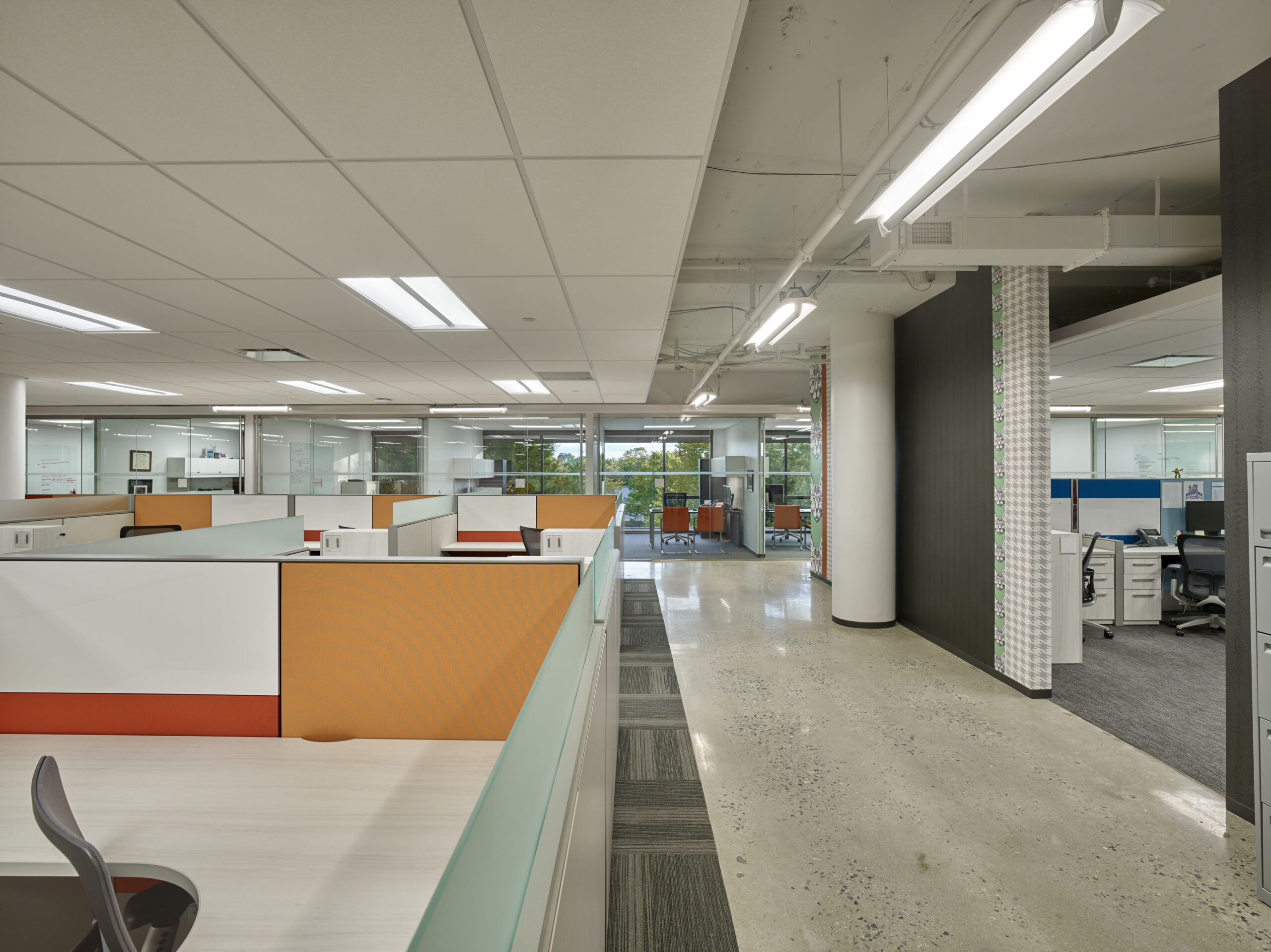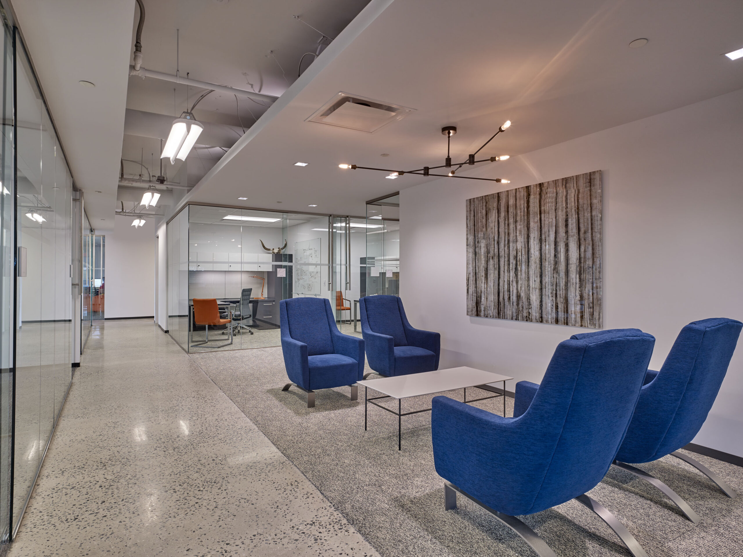 Recruiting top young talent is a persistent challenge for tech industries; D2 helped eMoney Advisors create a space that would help them do exactly that. Vibrant colors, raw finishes, and even a collaboration area designed like a garage—details throughout the space evoke vibes of a small start up. A central stair links the two main floors of the space and doubles as a large gathering hub for company-wide meetings. Work rooms, computer labs, private offices and open-office workstations offer a variety of work styles to accommodate any employee. It’s an office with small-space vibes for a big company.