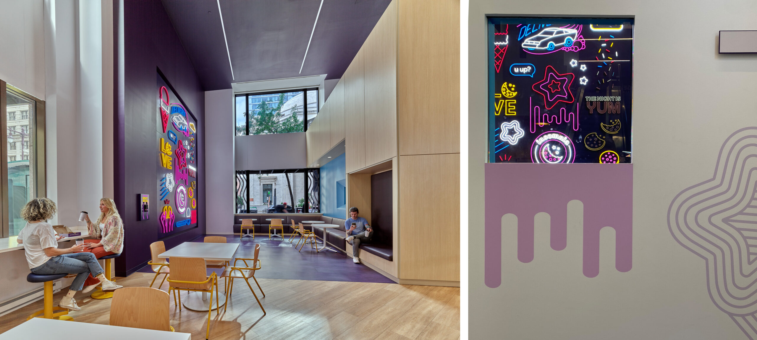 Ultimately, the new Insomnia Cookies HQ is a testament to collaboration and creativity, with every corner of the building speaking to the brand’s DNA. With each floor deliberately designed to serve a tailored purpose, it becomes an extension of Insomnia’s mission—delivering warm, delicious cookies with a side of fun and a dash of nostalgia.