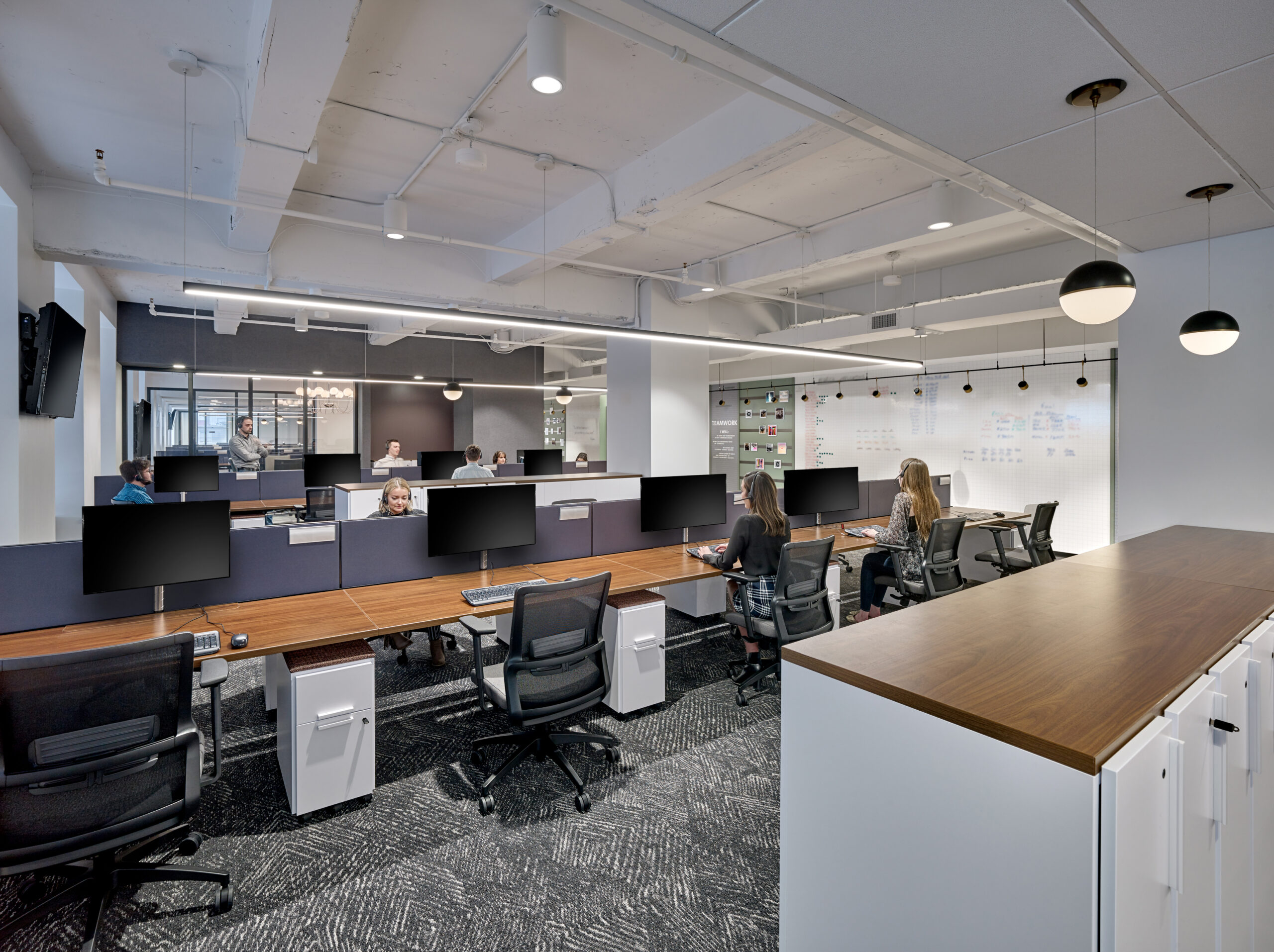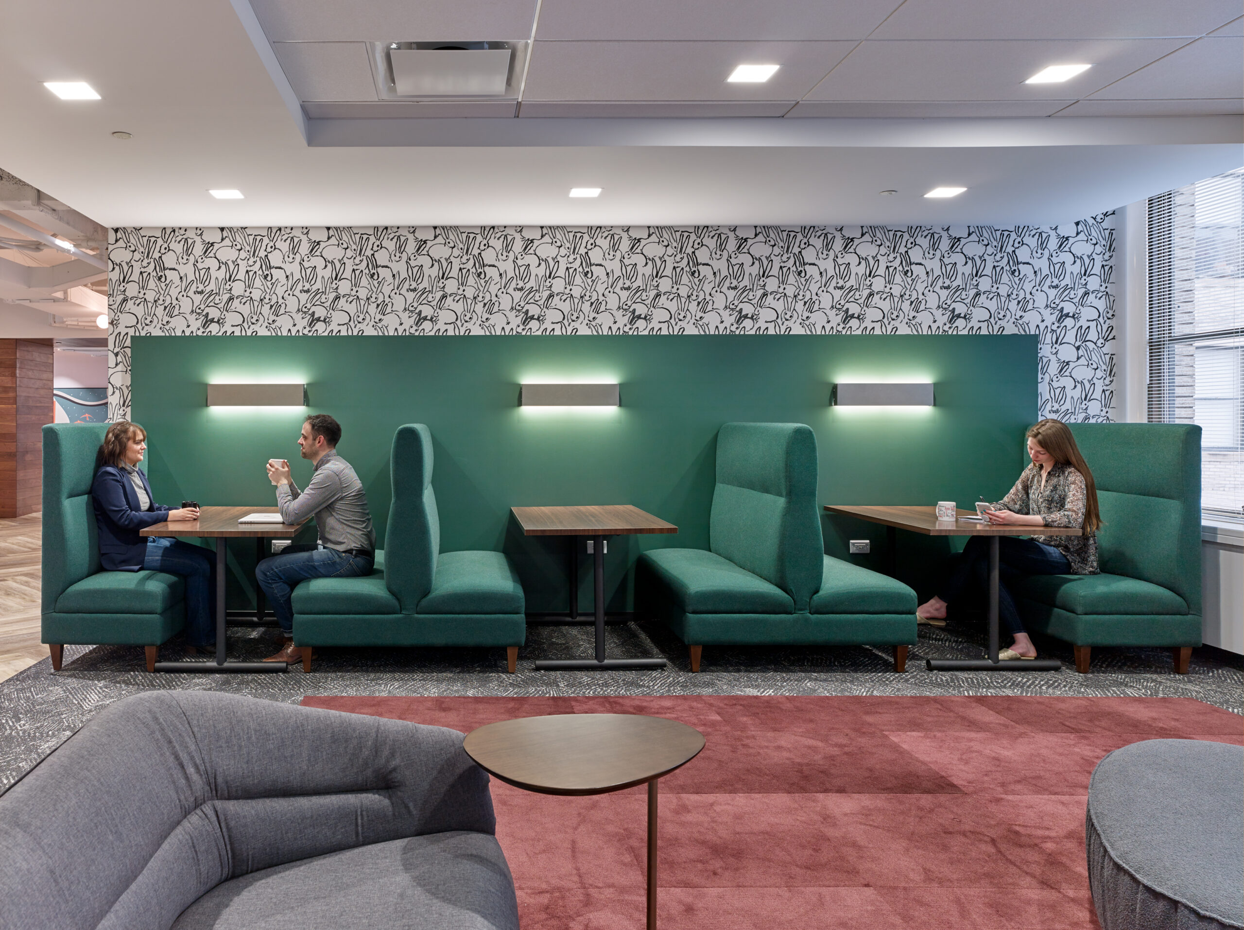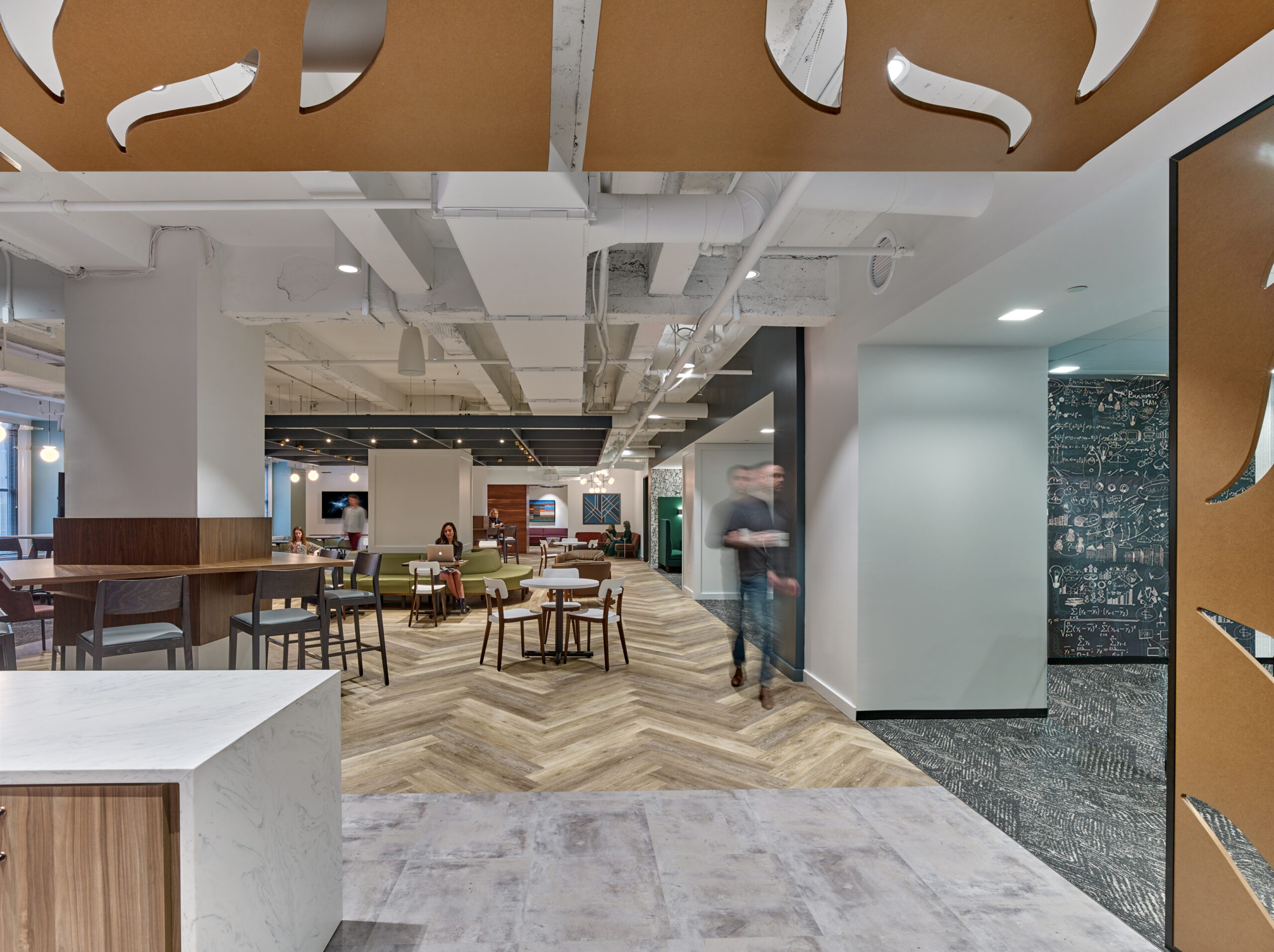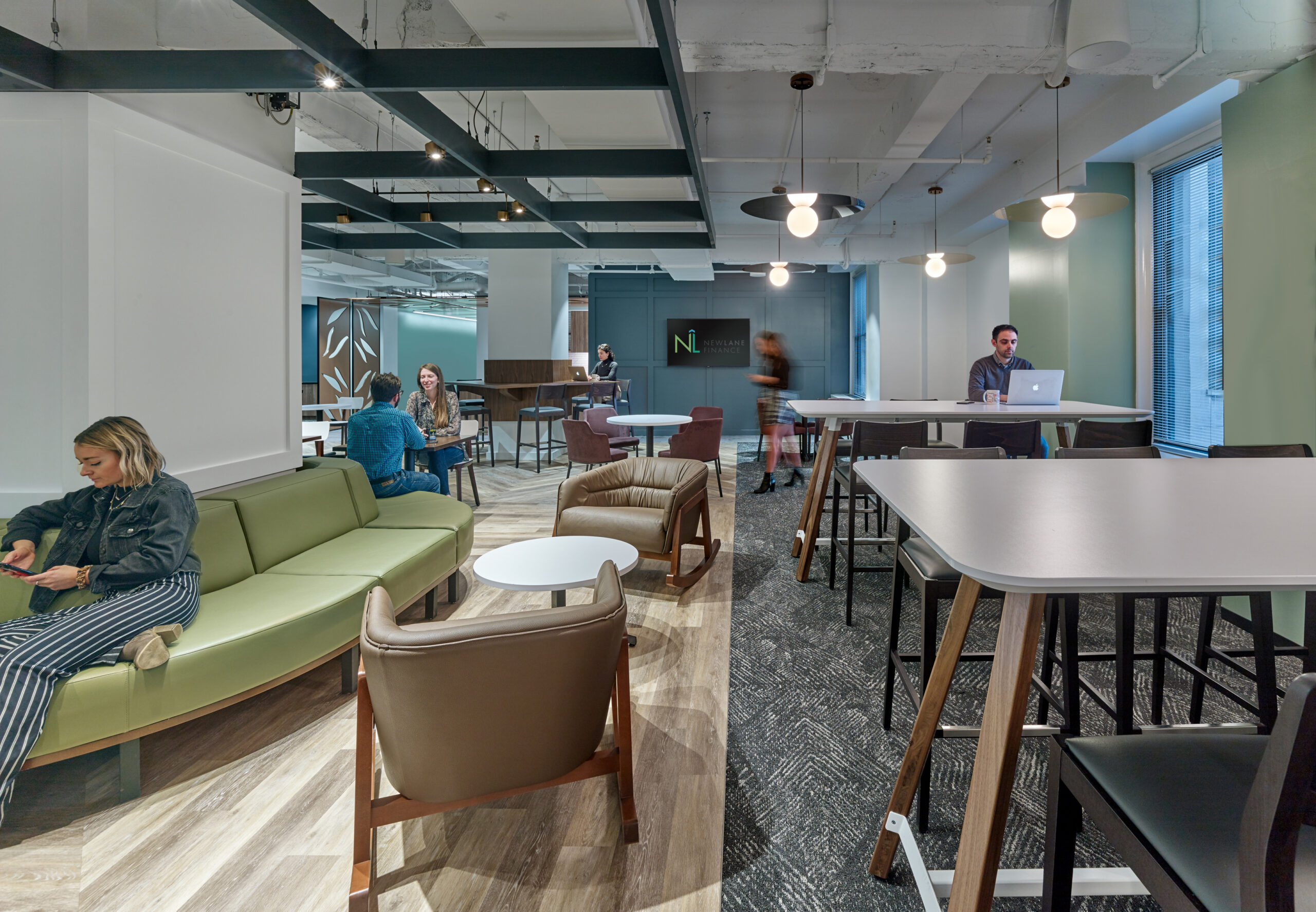 NewLane challenged D2 to design a recruiting engine to propel the firm’s growth from a 2-person subsidiary at project onset to a bustling 150-employee company by its end. The design team led a process focused on bringing out NewLane’s brand shape and personality along with deep strategy exploration to define a structure that would best support and exemplify the robust team NewLane was trying to build. The ‘Living Room’ – affectionately dubbed by the NewLane team – is also the first impression. Bridging two fast-paced, sales-oriented office wings, the room invites fully mobile teams to collaborate, work in the library, decompress in the game room, attend an all-hands address, or grab a coffee. Perhaps most importantly, for NewLane’s aggressive growth targets, this is a first impression that captivates.