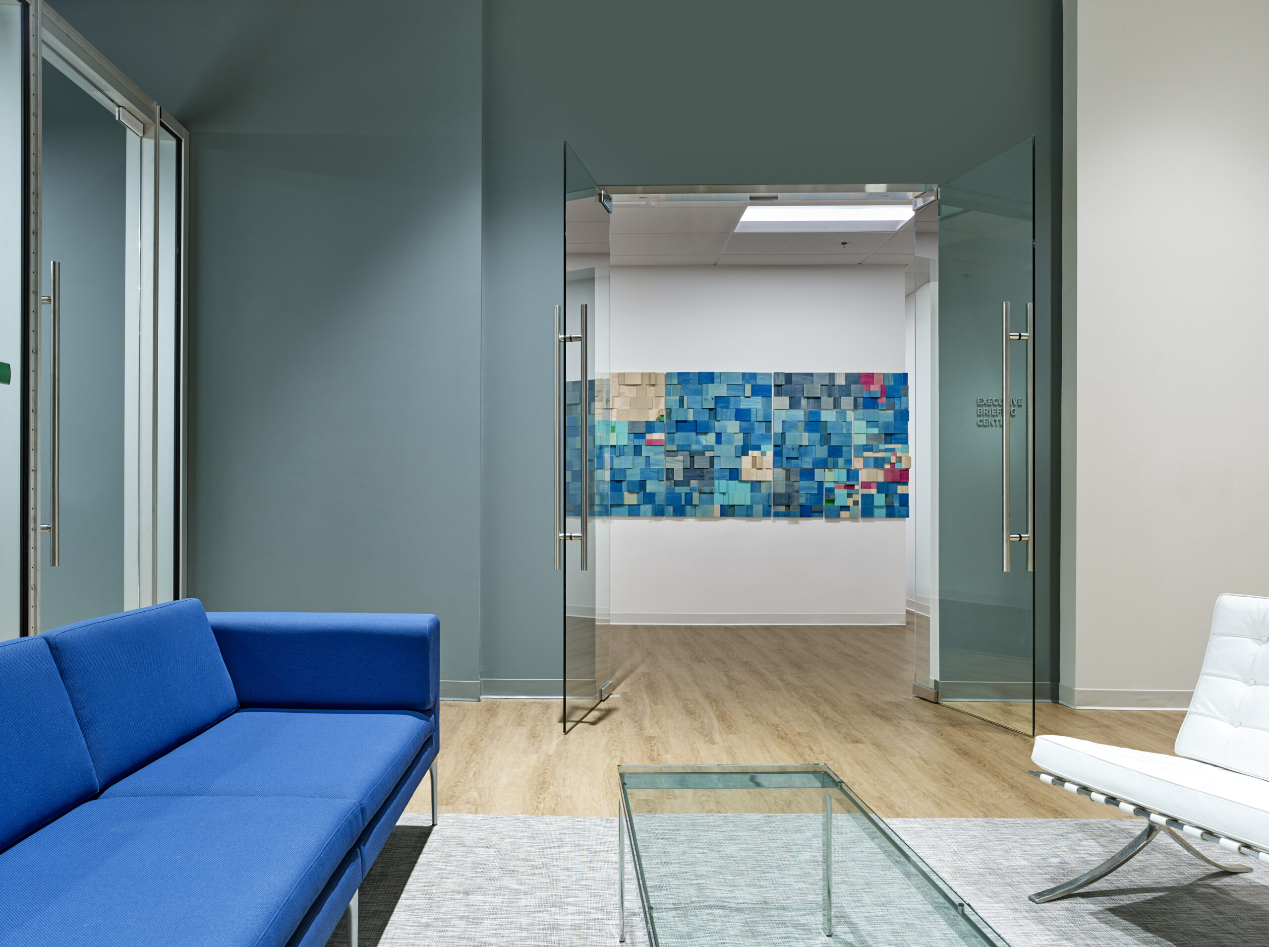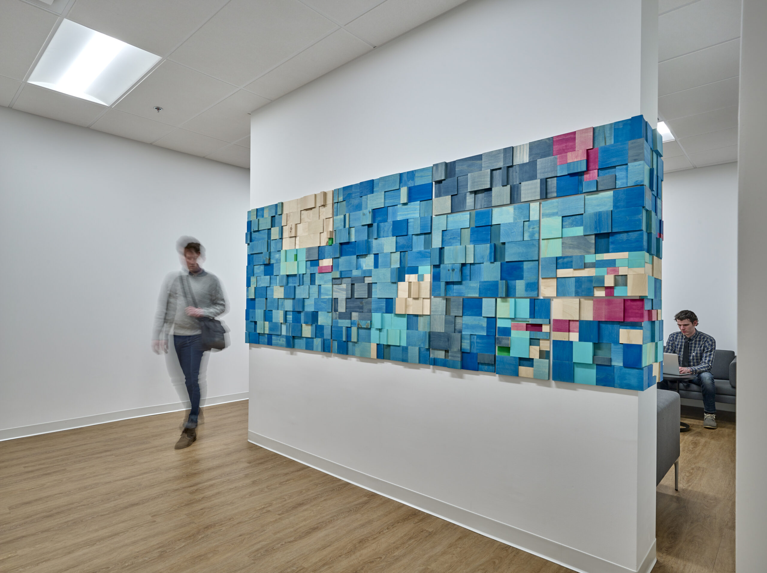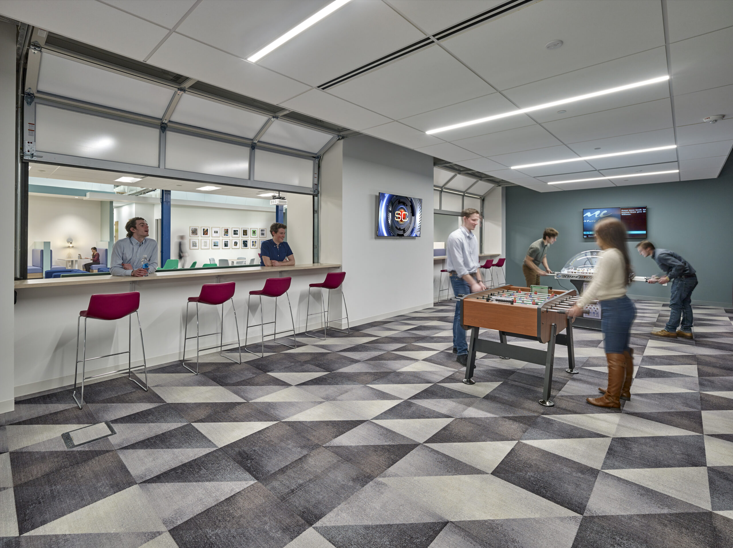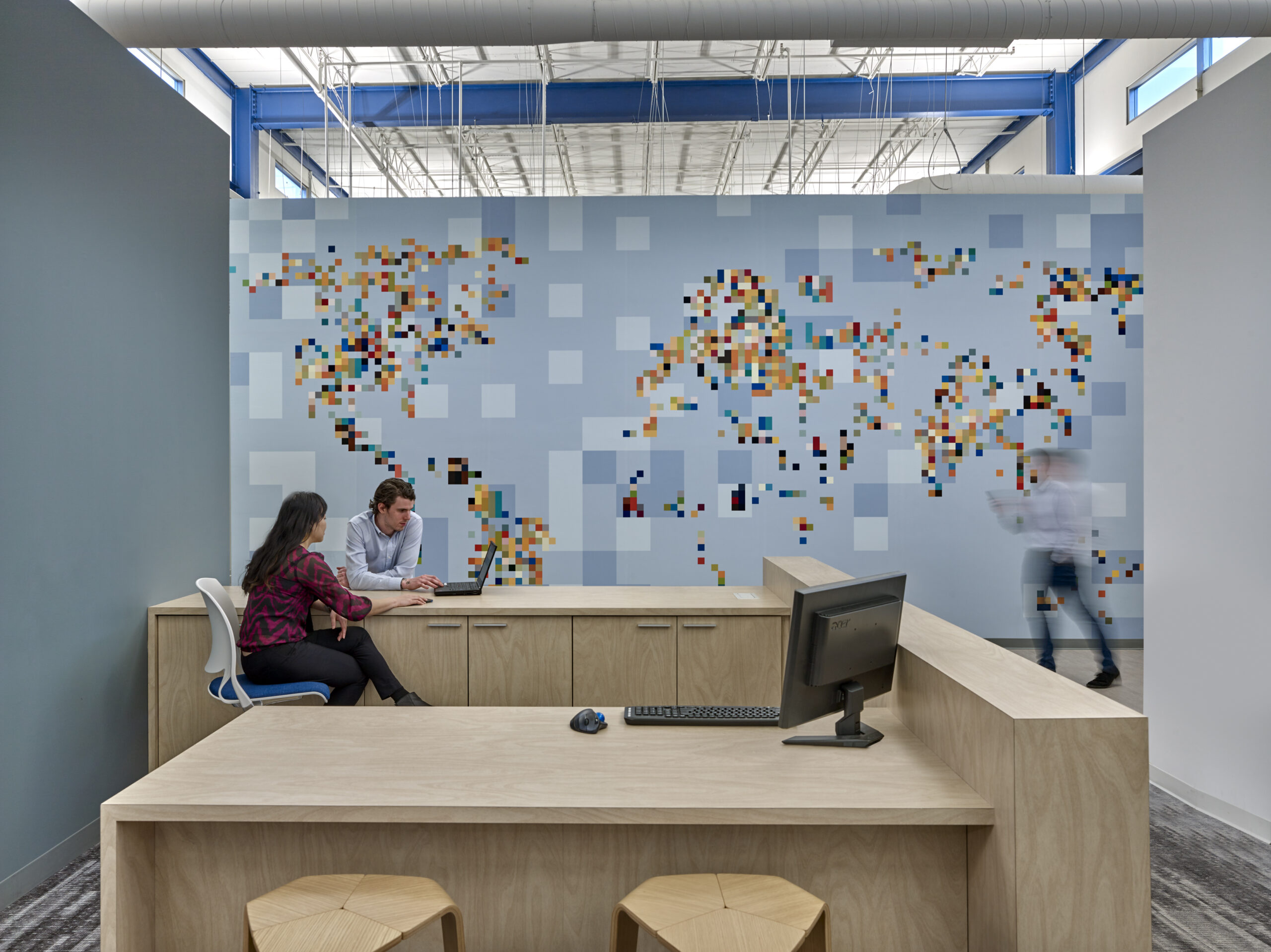 Qlik was losing energy in their suburban Philadelphia space—departments were transferring to other office locations and employees were increasingly working from home. Their relocation provided the opportunity to drastically affect their company’s structure, moving from an office heavy footprint to an open floor plan. It also provided the opportunity to minimize real estate costs by maintaining most of the existing conditions. Renovations were strategically controlled and applied where impact would be greatest – reception area and meeting spaces– while the overall design strategy focused on infusing the Qlik brand and personality. The exterior of the building was reclad to include storefront glass and bold branding.