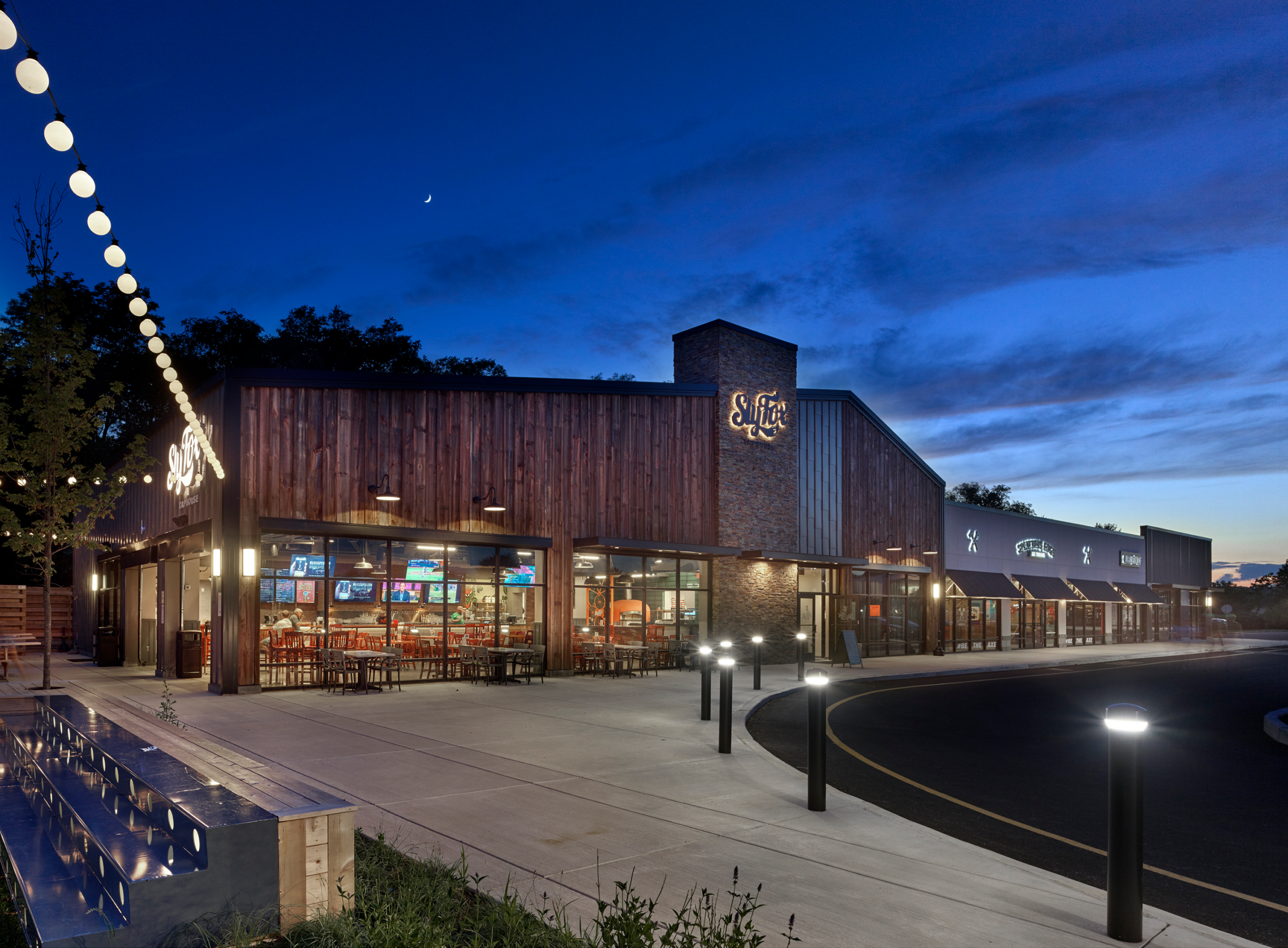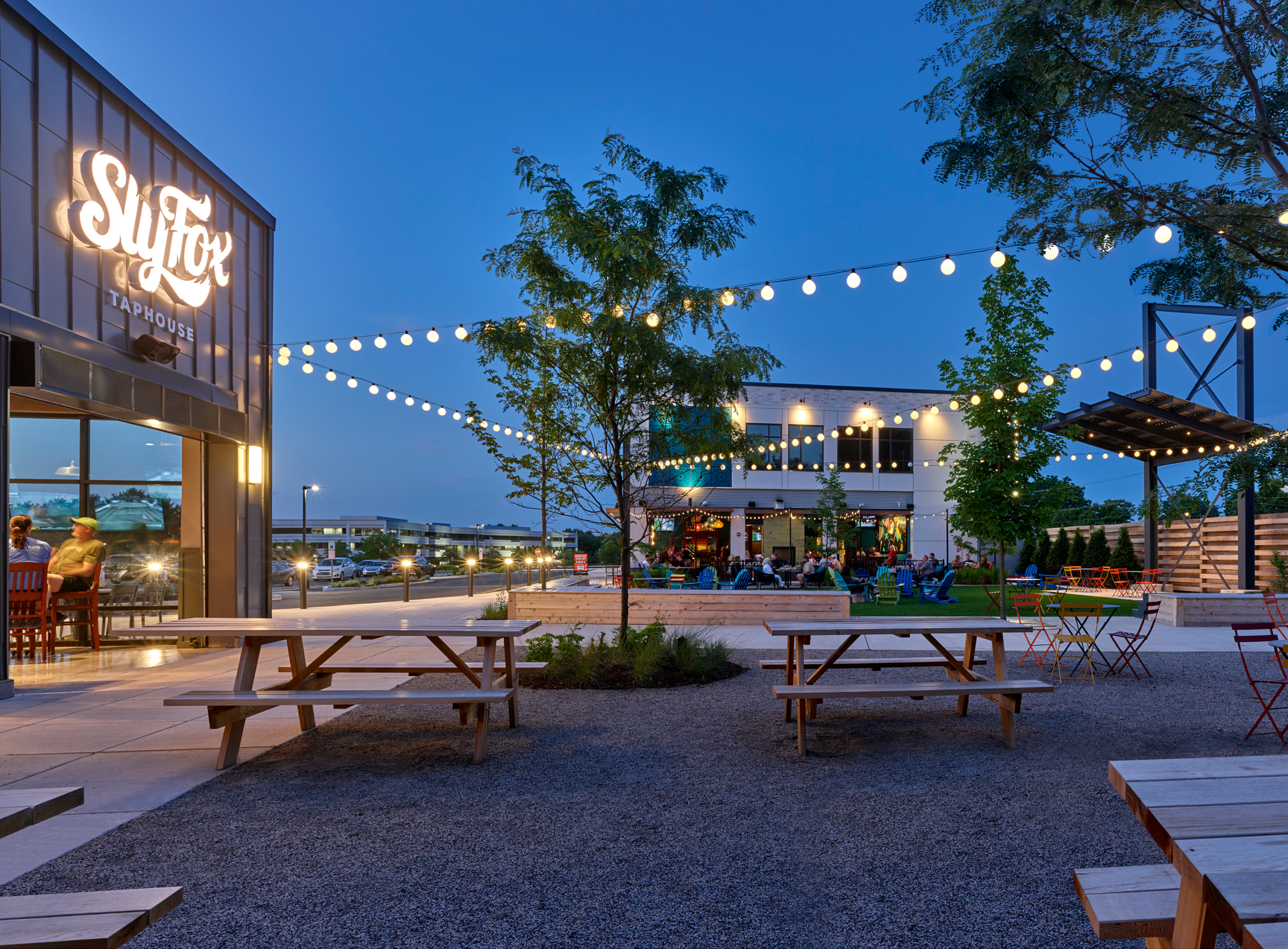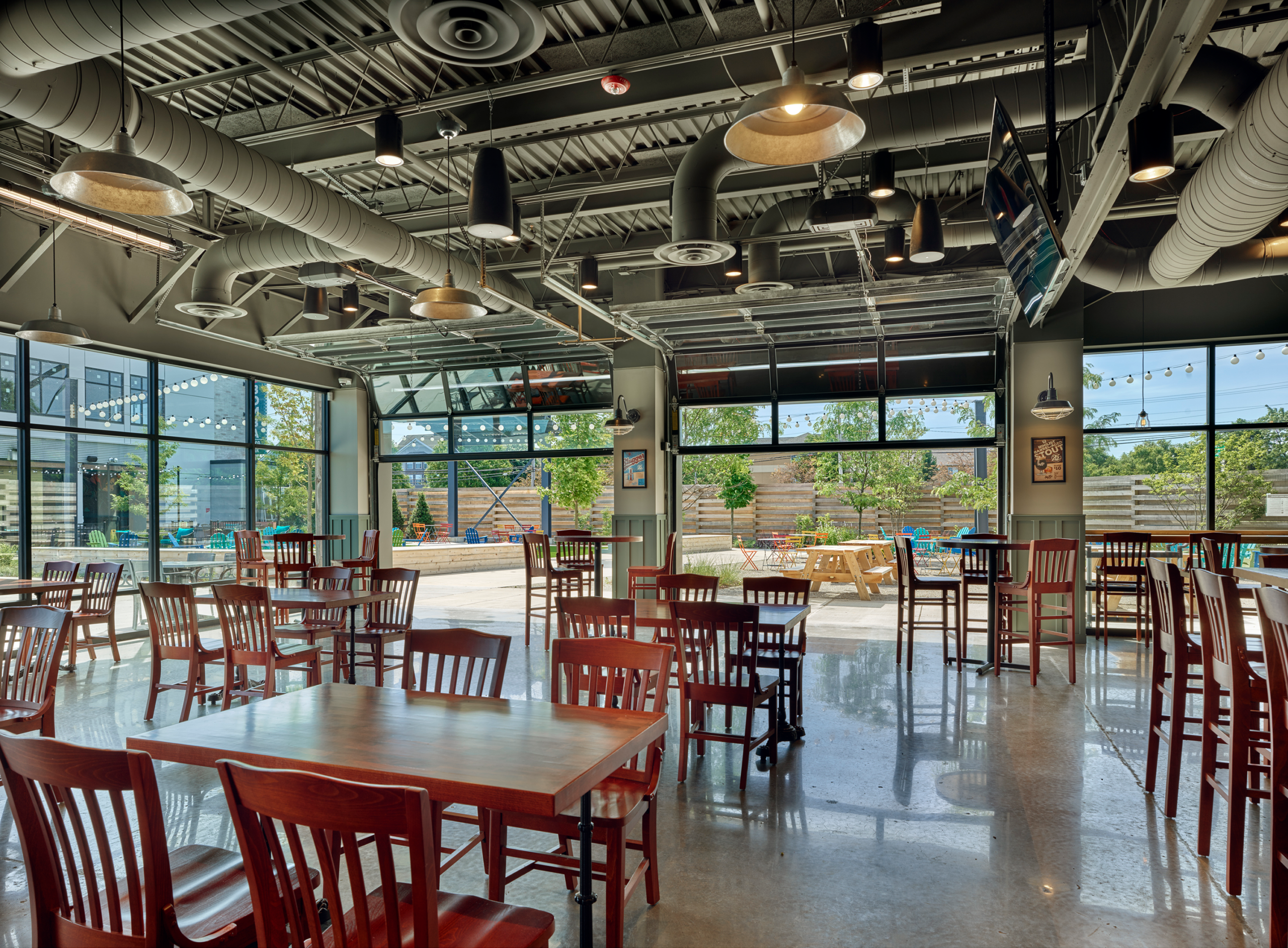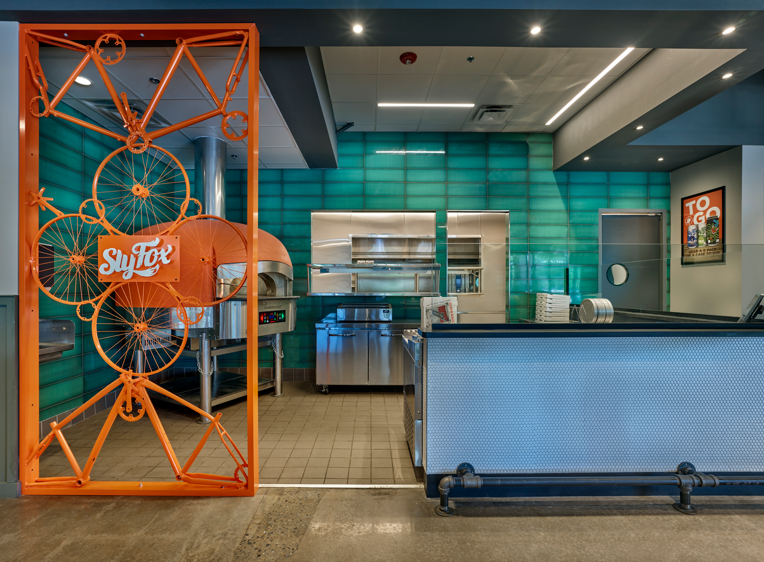For Sly Fox, a family-oriented restaurant experience is a key brand differentiator and a major driver for their Malvern location. D2 designed the tap house with this in mind and created a seamless interface with the outdoors through the installation of two large garage doors. A bold pop of color on the Pizza Oven is a main focal point and a customer favorite. The casual, comfortable aesthetic is inviting while also giving nod to the manufacturing roots of Sly Fox.
