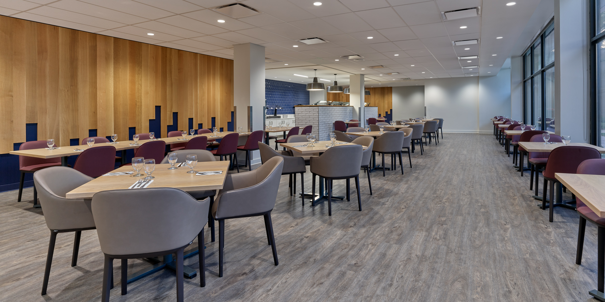 Notorious for their voracious appetites, college students require a village to keep their minds and bellies full. At the Diamond Club, Temple University honors their staff, faculty, and alumni’s hard-work with an upscale dining experience in the heart of campus. Relocated to Johnson & Hardwich Hall, the Diamond Club now neighbors the student dining facility. Its proximity to campus life keeps guests plugged into the action, while providing them a peaceful oasis in which to fill up and recharge.