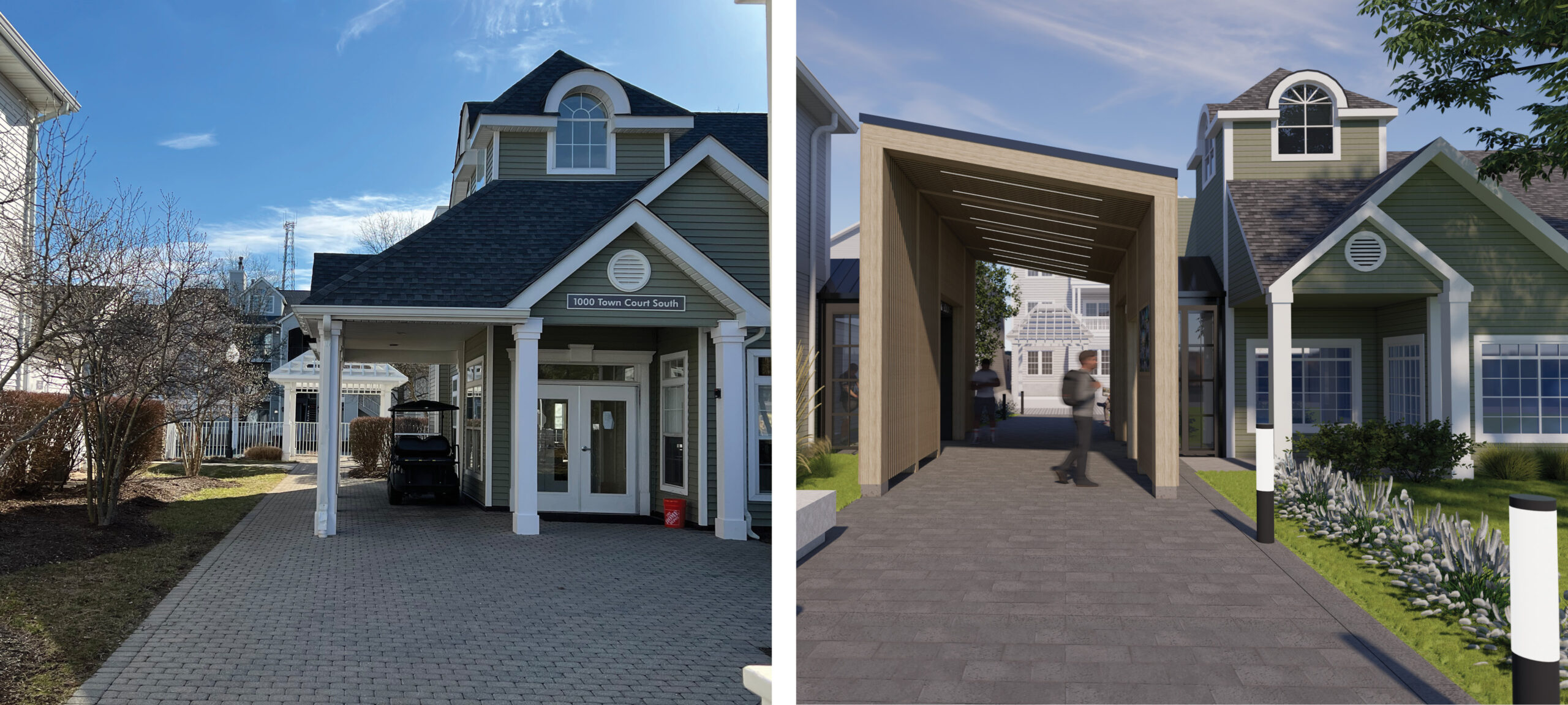 To enhance sense of arrival, a new main entrance and outdoor linking structure now provide a strong first impression and visual continuity between buildings, all while avoiding extra land approvals. A former maintenance zone was transformed into a lively amenity center offering a fitness facility, gaming lounge, conference room, and social spaces for residents and families. The clubhouse was revitalized into a flexible venue for events and gatherings.