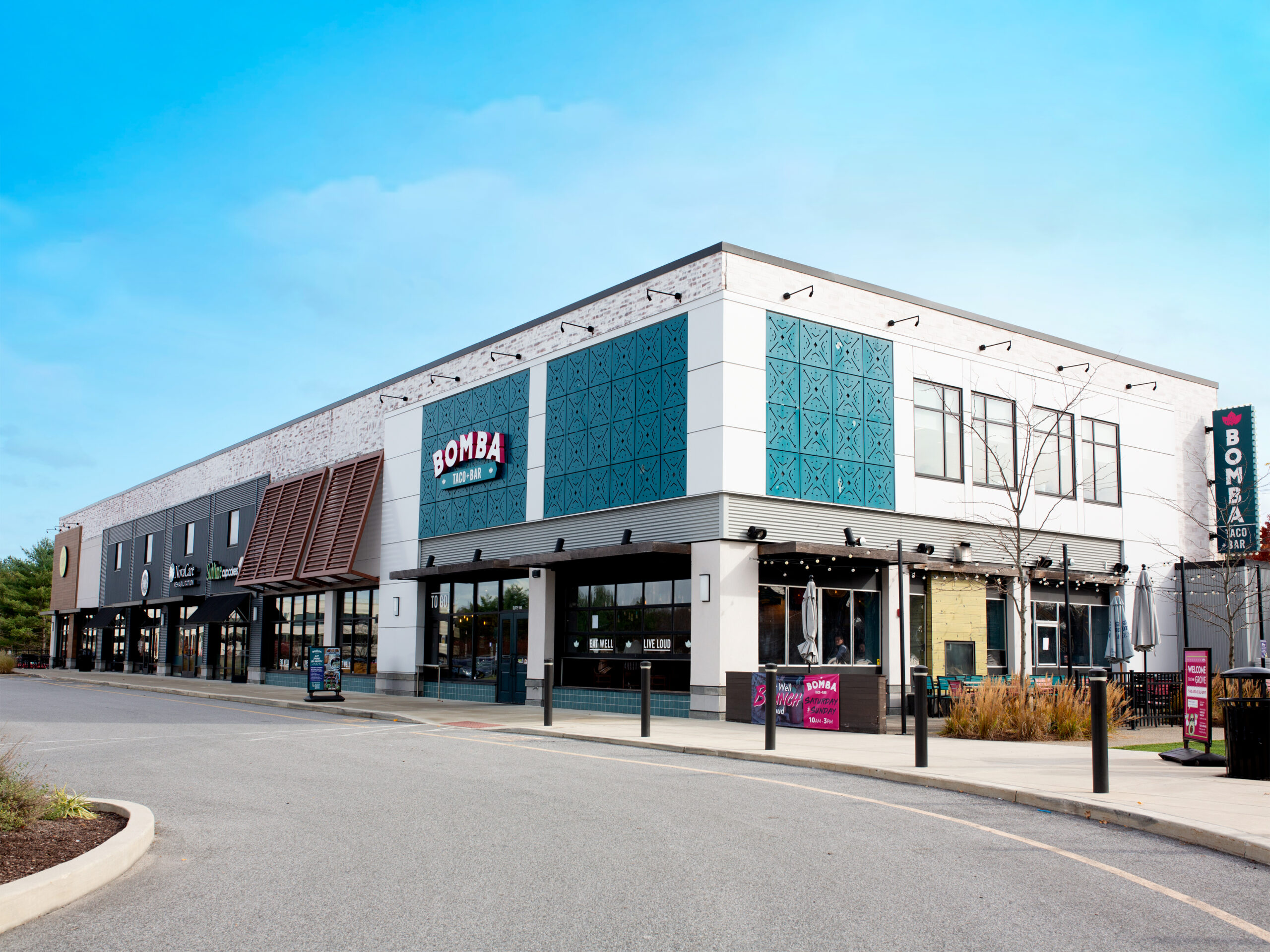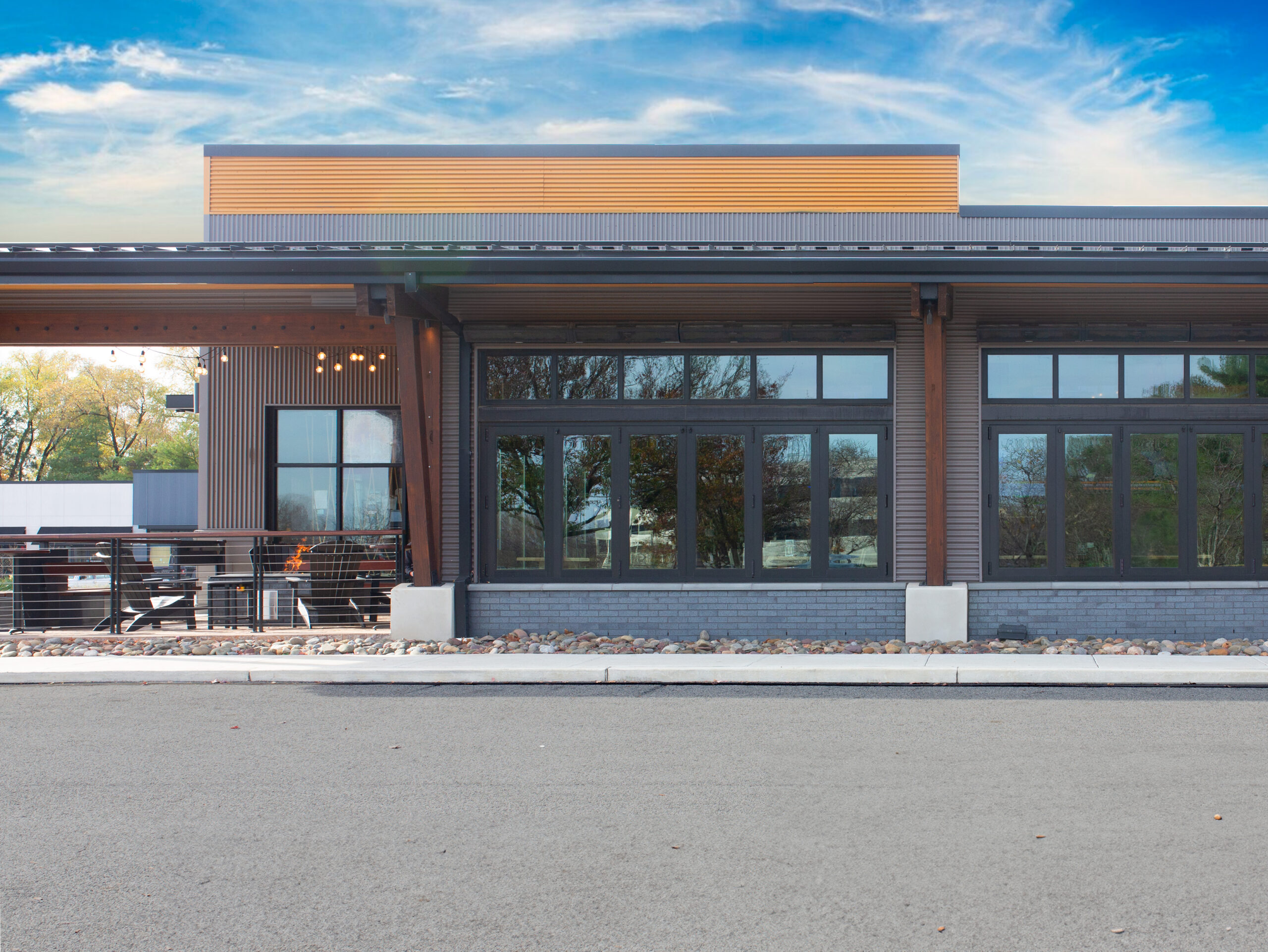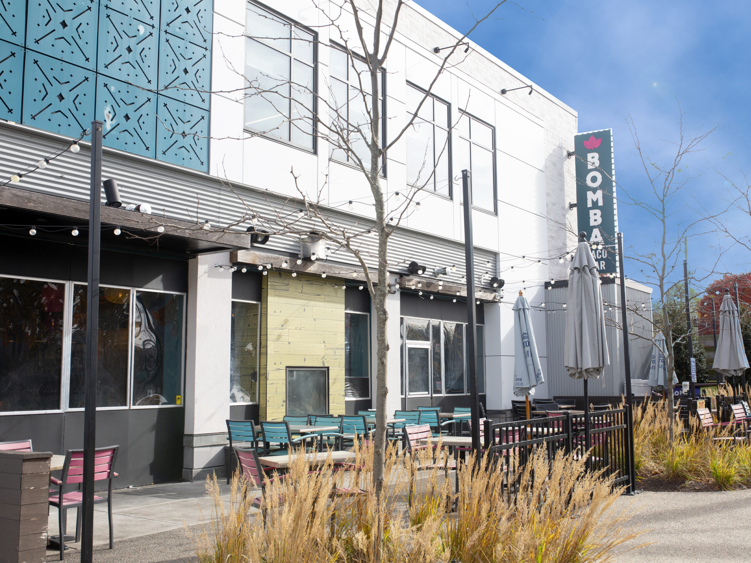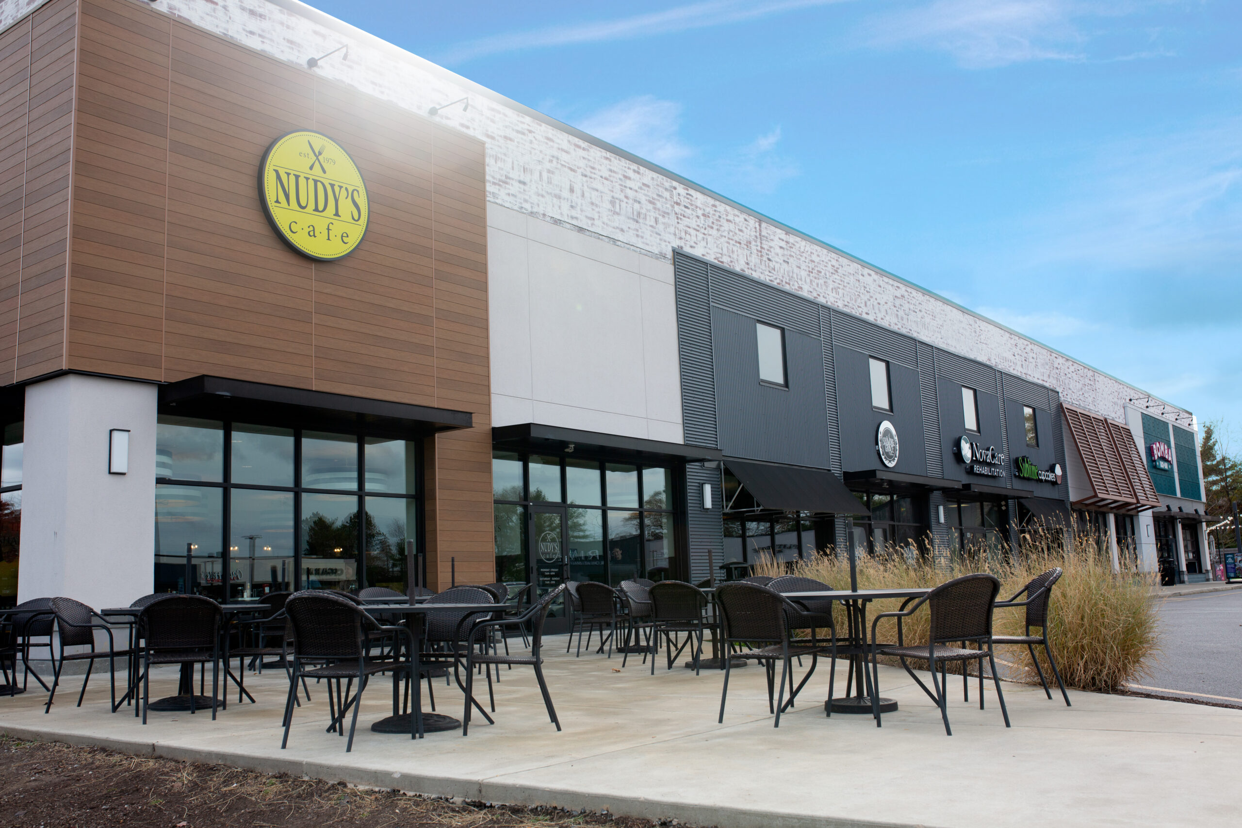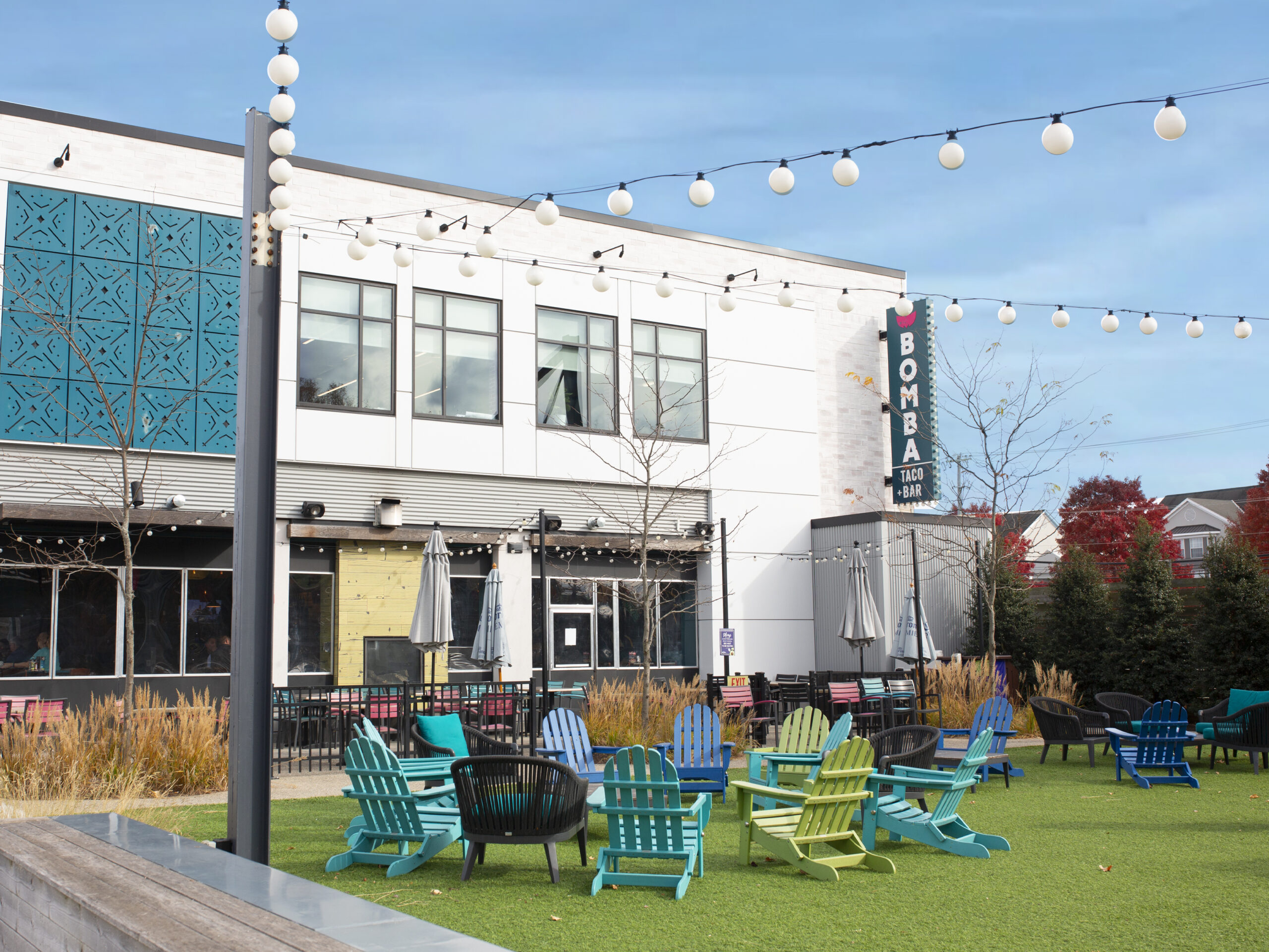 D2 was engaged to bring an aging shopping center, full of vacancies, back to life. Named for the outdoor space that unifies two anchor restaurants, the Grove, was an exercise in addition-by-subtraction. Partial demolition at the intersection of an existing L-shaped building comfortably connects to both of its bookend restaurant spaces, becoming the Living Room of project. An eclectic mix of façade treatments creates variety and interest and provides the opportunity for the center’s tenants to each showcase their unique brands.