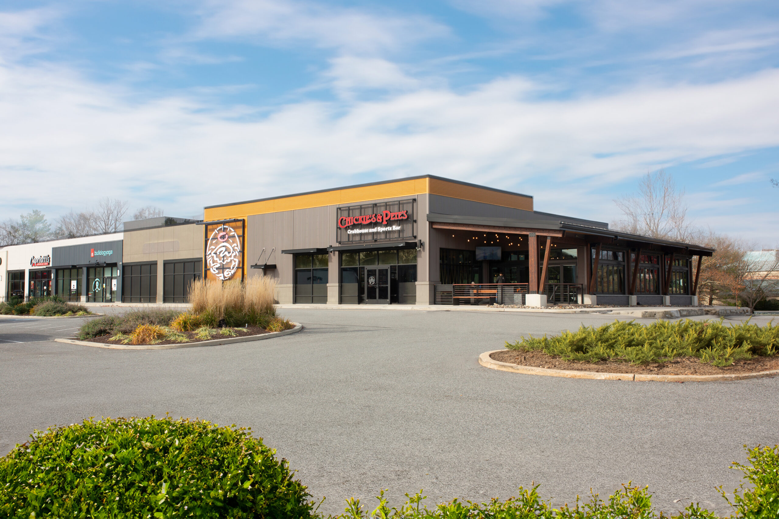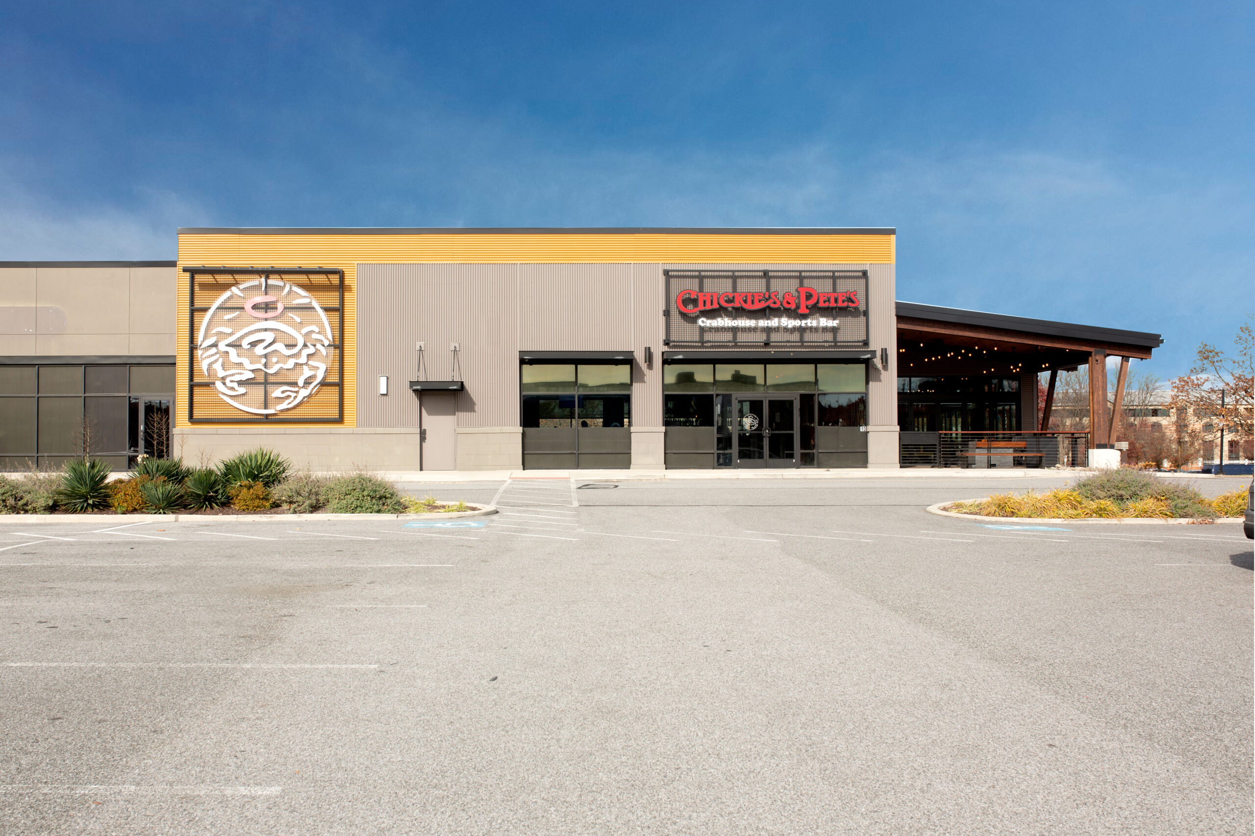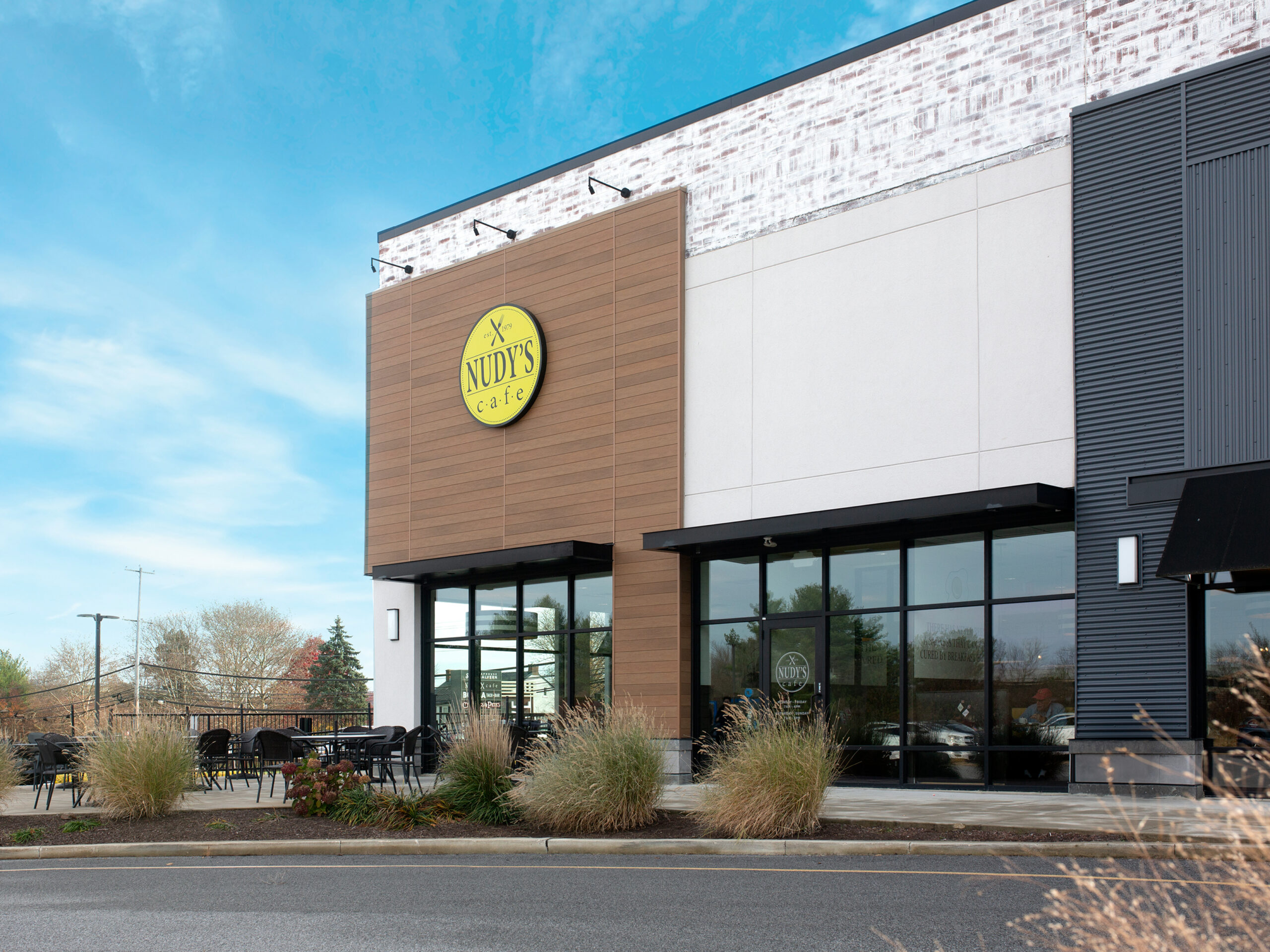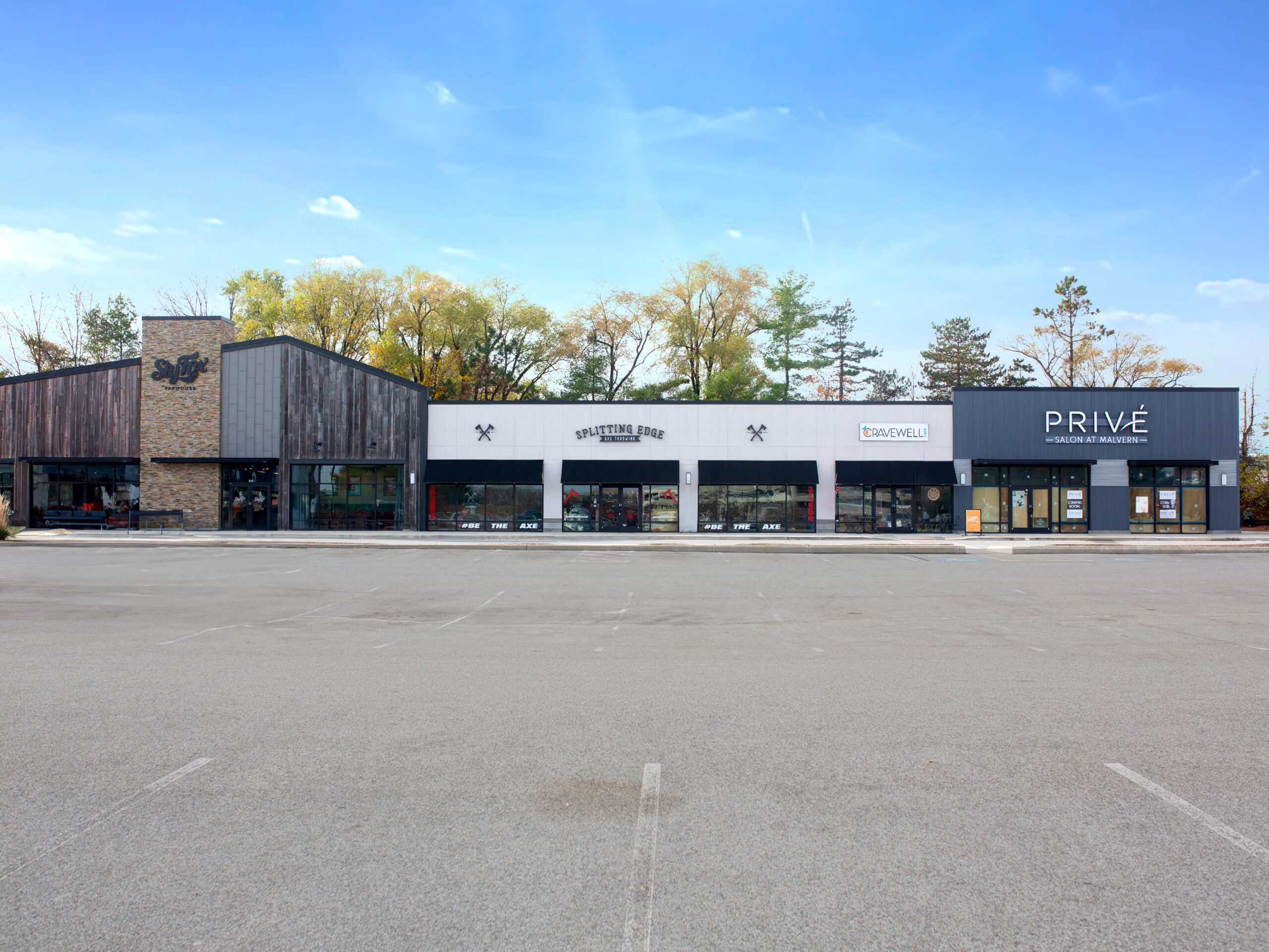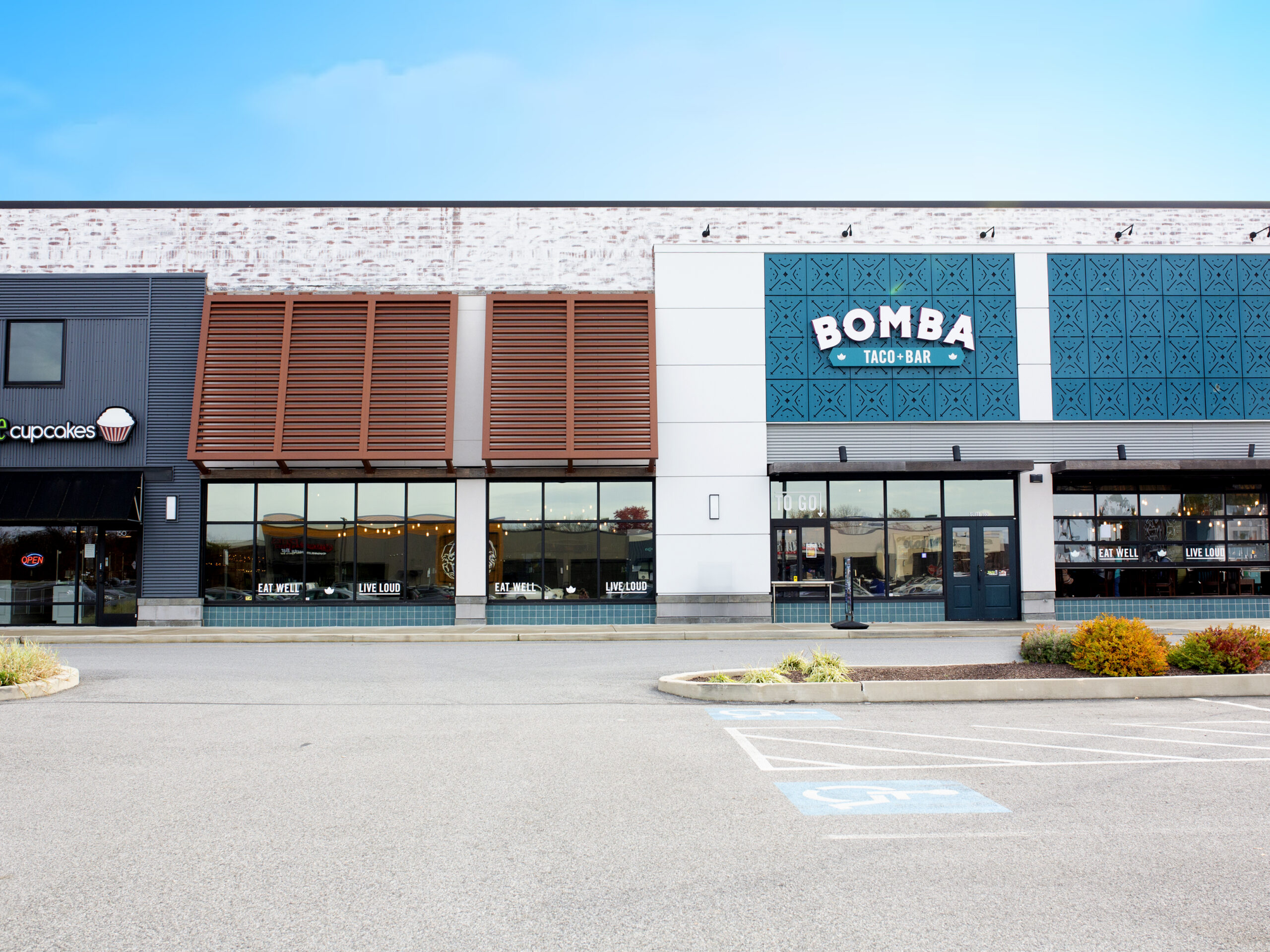 D2 was engaged to bring an aging shopping center, full of vacancies, back to life. Named for the outdoor space that unifies two anchor restaurants, the Grove, was an exercise in addition-by-subtraction. Partial demolition at the intersection of an existing L-shaped building comfortably connects to both of its bookend restaurant spaces, becoming the Living Room of project. An eclectic mix of façade treatments creates variety and interest and provides the opportunity for the center’s tenants to each showcase their unique brands.