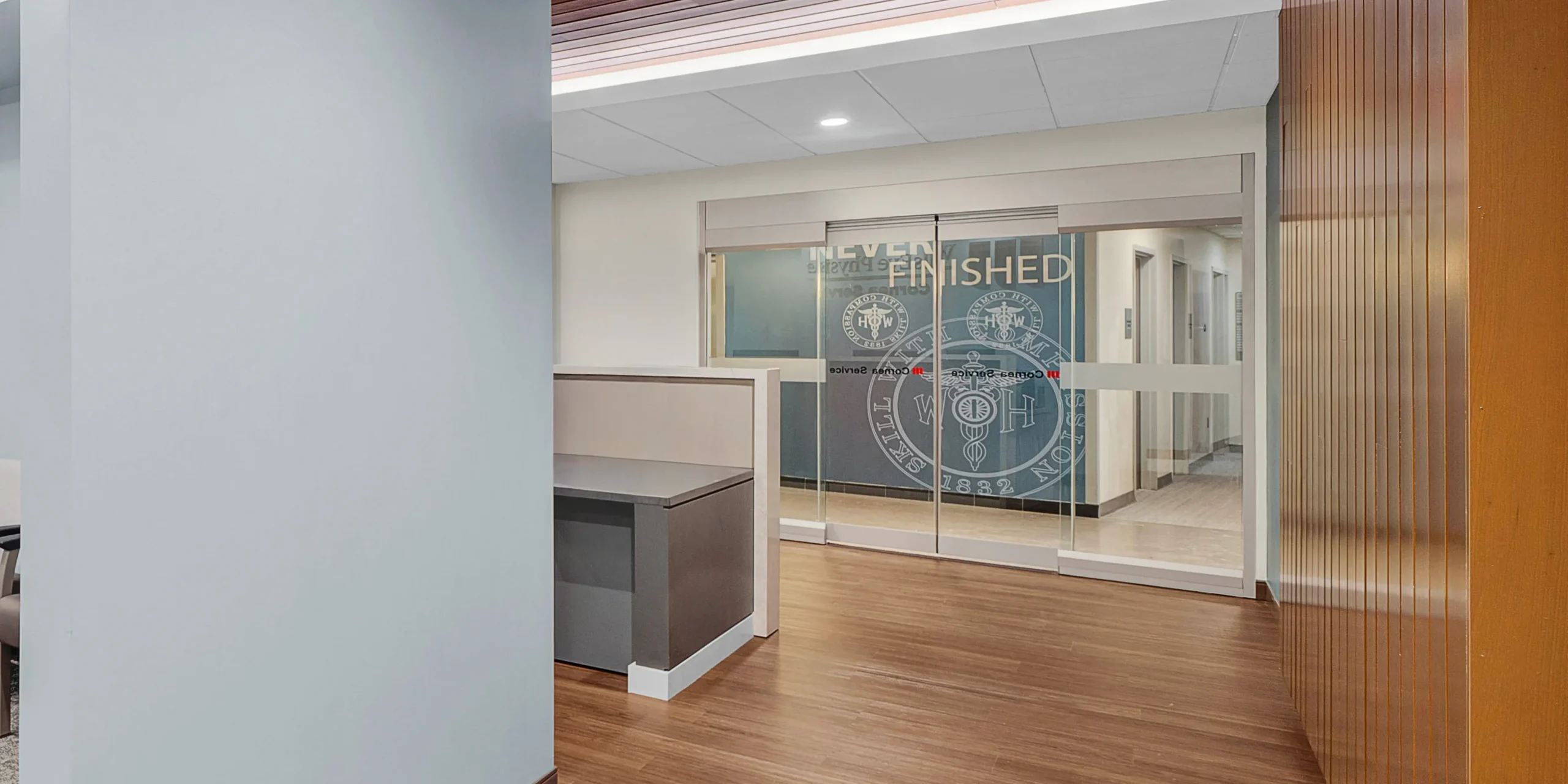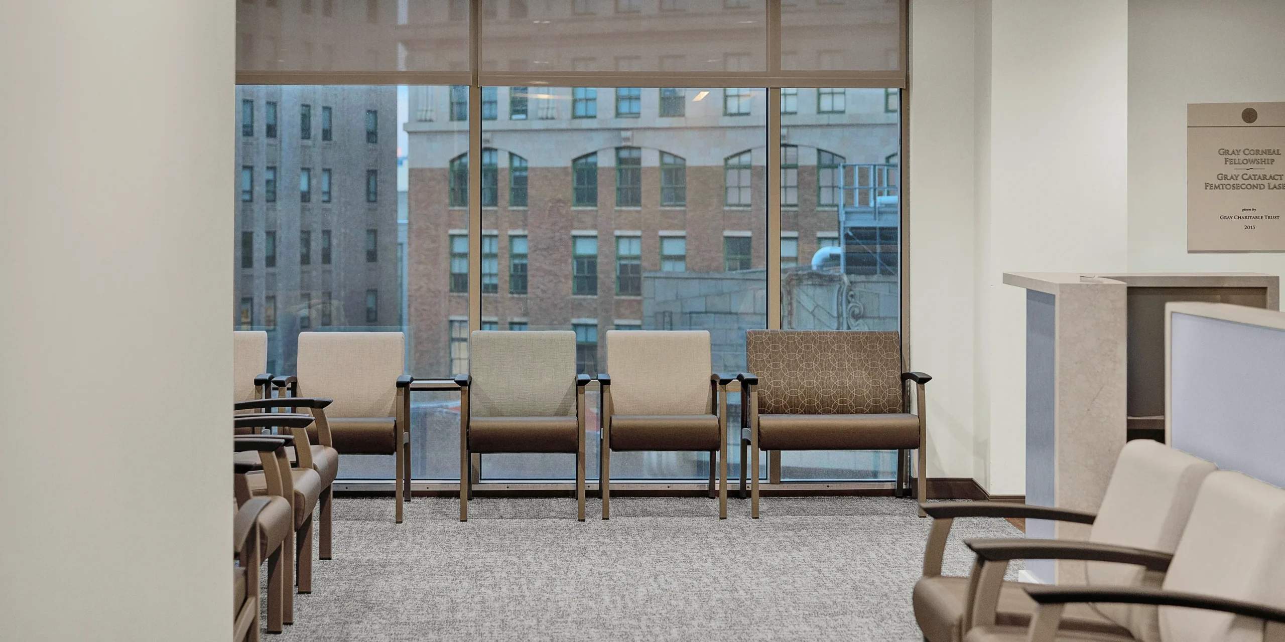 The 9th‑floor Cornea Service renovation emerged from a clear need to modernize an aging outpatient environment while aligning it with the direction already established elsewhere in the building. Informed by standards set in recent renovations, the project translated tested planning principles and finishes into a space shaped by the daily realities of cornea care, all while maintaining continuous operations during construction.