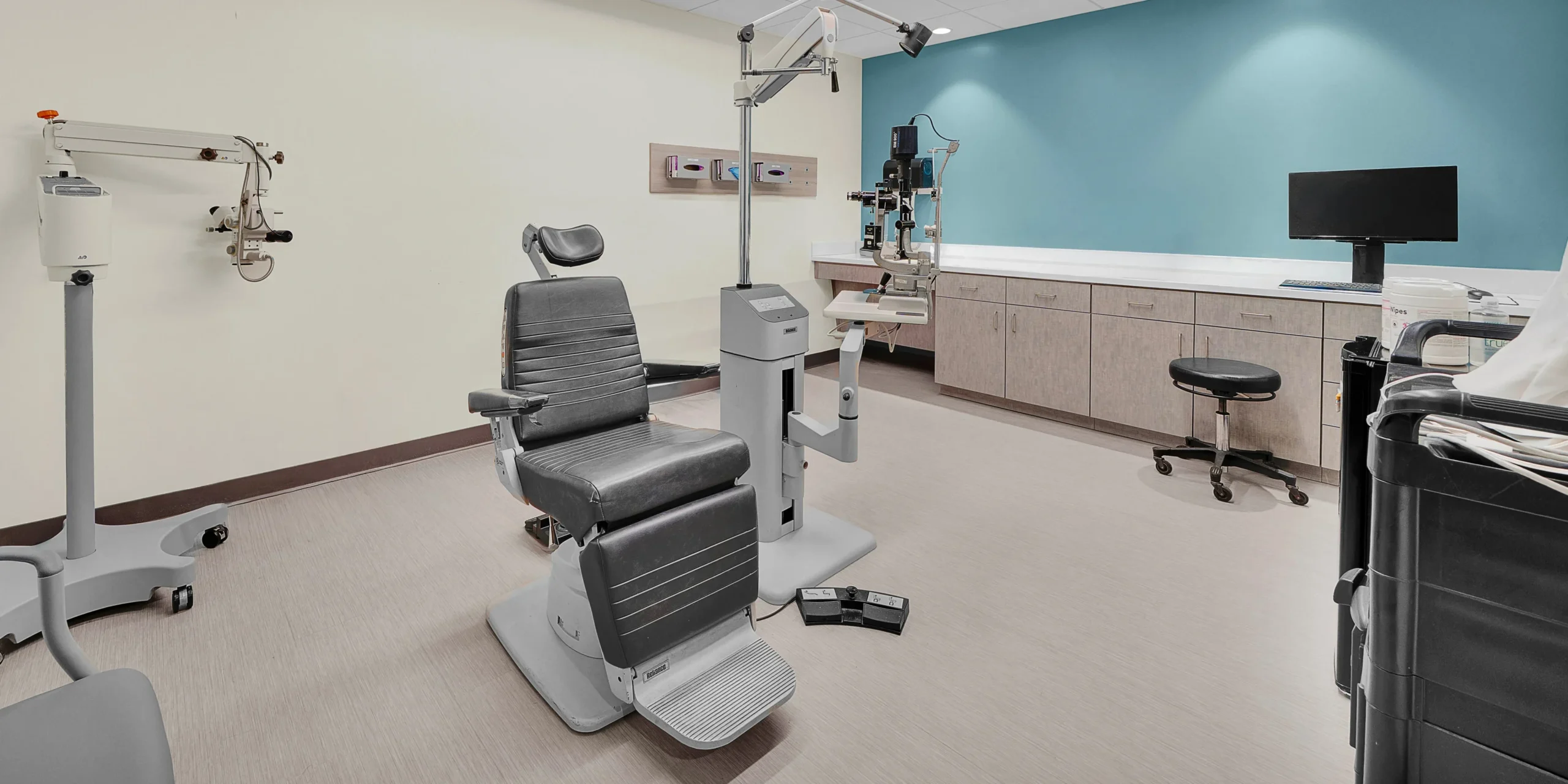 The layout organizes exam rooms into defined care pods aligned with physician workflows, reducing unnecessary movement and improving efficiency. Circulation and wayfinding were carefully considered for patients with vision impairments, with wider corridors, clear sightlines, and smooth material transitions that promote comfort and ease. A palette of natural, biophilic tones reinforces a calm, welcoming environment without compromising performance.